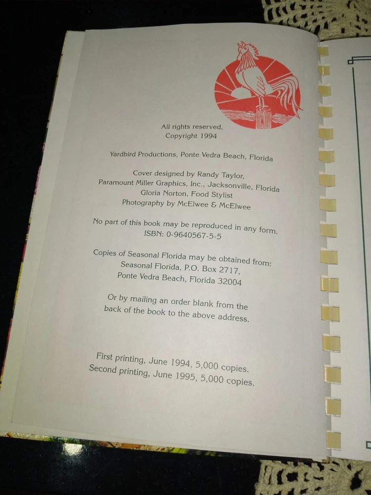 Seasonal florida spiral bound cookbook copyright 1995
