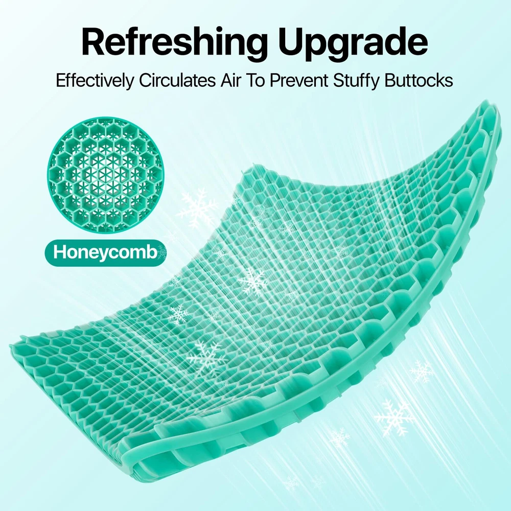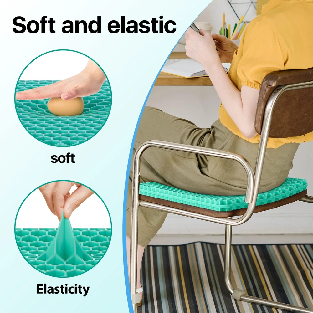 【Large size & Help Relieve Pain】seat cushion size is 18.9 x 17.7 x 1.6 inch, weight about 2.6lb.Double-layer cushion design. Not only thicker, but also more comfortable effectively prevent and alleviate various pain symptoms, including tailbone problems, lumbar strain, sciatica, and degenerative disc disease. 【Breathability and heat dissipation】Our seat cushion adopt a honeycomb design, and the built-in free-flowing air channel prevents the seat from sweating and maintains comfortable heat dissipation. 【Super soft & hard to deform】The cushion has cushioning property that it does not break even if you put an egg and sit down. In addition, it is characterized by highly elastic material, it restores to its original shape as soon as it is stretched and squeezed and has superior durability than a conventional cushion. 【Applicable scope】Chair pad is great for office, home, travel, car seat, or wheelchair use, suitable as gifts for family, friends, and colleagues. 【Zipper design, easy to clean】The zipper design and detachable seat cover can better clean the seat cushion. This way you can use the seat cushion without worrying about soiling the seat.