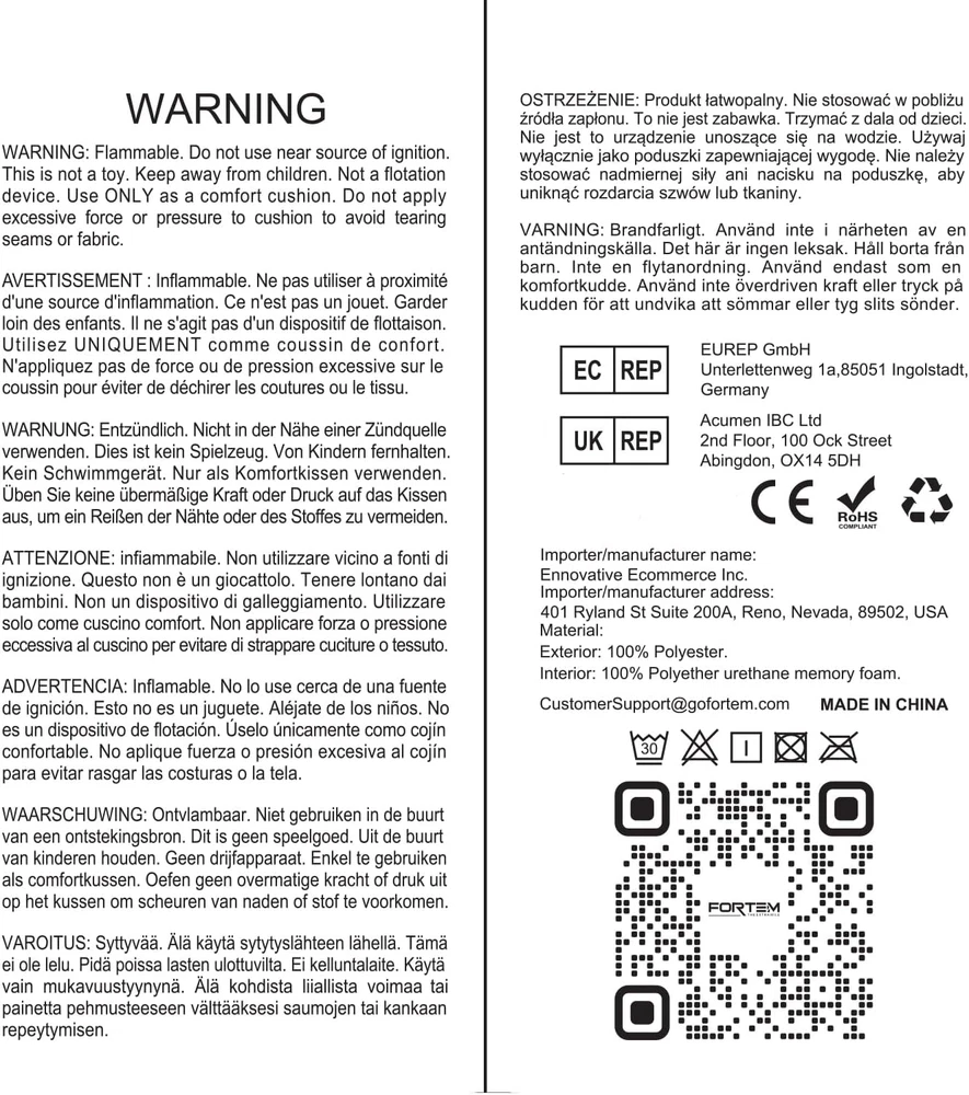 Enjoy Pain-Free Life with Ultimate Comfort – Our back support pillow is adjustable to the contours of your body, making it a great lumbar support pillow while driving or working long hours. The seat cushion for office chair is of utmost relief for coccyx/tailbone pain. Best Orthopedic Pillow – FORTEM chair cushion has an ergonomic "U" Shaped Cutout. This sitting pad is highly recommended by orthopedic experts as it alleviates pressure on the sciatica nerve to reduce back, leg, and butt pain. Enjoy it as an office chair cushion or as a car pillow. Premium Quality and Easy Maintenance – The seat cushion and lumbar support pillow for car are made from 100% pure memory foam. It helps maintain a healthy body posture by absorbing some of the pressure against your body. This half donut cushion seat and back cushion are encased in a removable, washable mesh covers. Versatile and Lightweight – Our lumbar support pillow for chair has adjustable elastic straps, it can also be used as a lumbar support pillow for car seat. Desk chair cushion can also work as a car seat cushion, or wheelchair cushion. Being portable, these memory foam seat cushions are your all-time travel companion. One Year Warranty – Enjoy being driver of your favorite car, truck, or gaming on your computer to heart’s content. Your FORTEM chair pillow and seat cushion for car come with a full year warranty. Product Description The video showcases the product in use. The video guides you through product setup. The video compares multiple products. The video shows the product being unpacked.