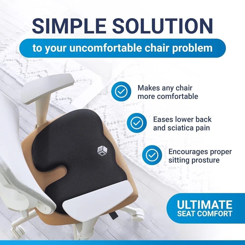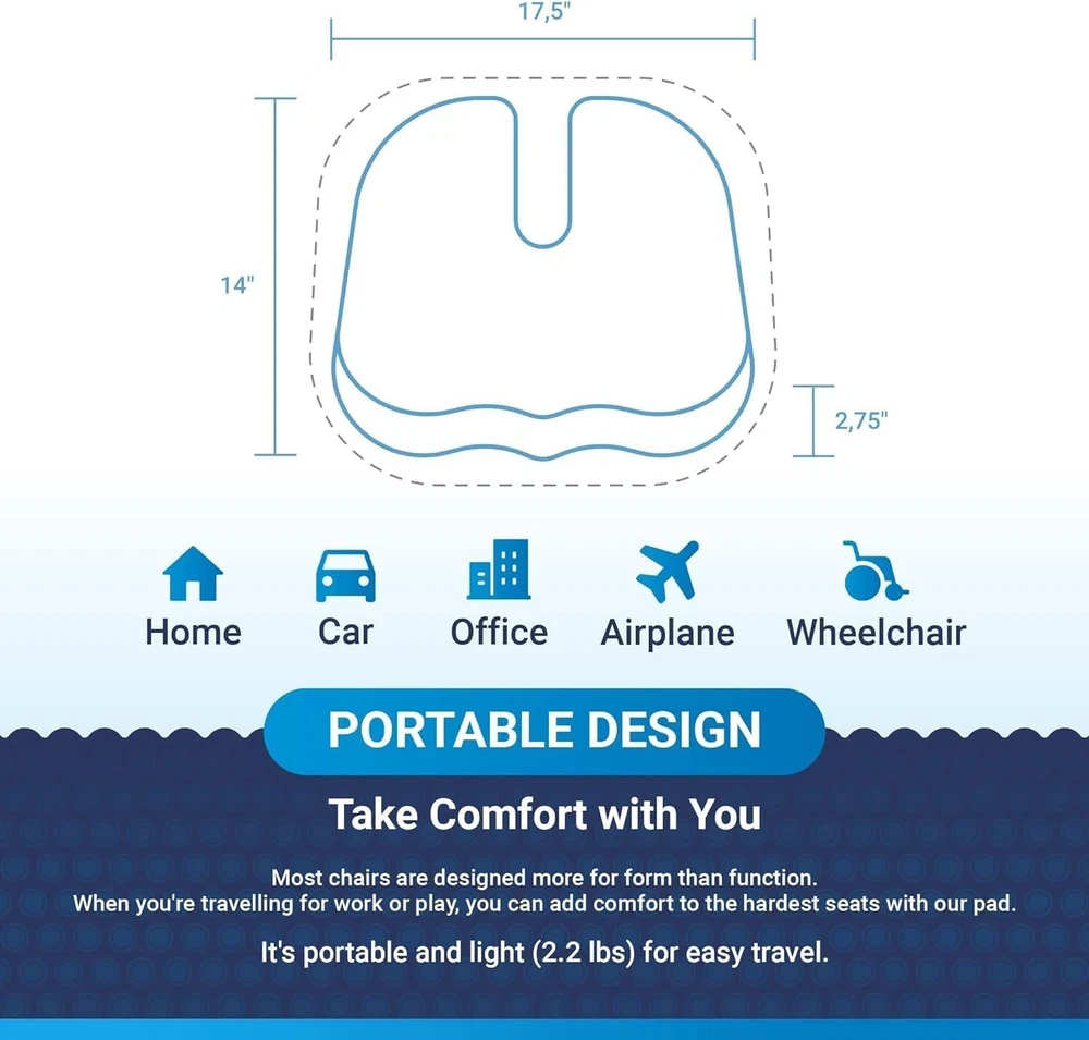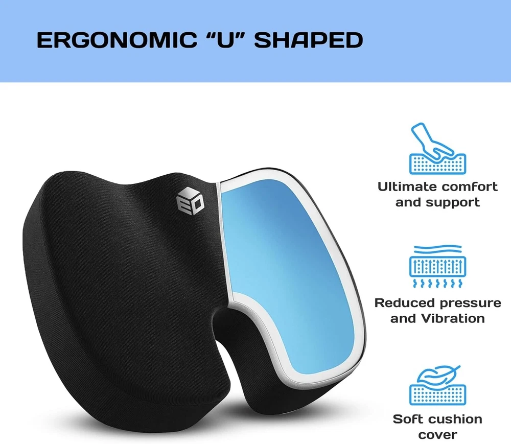 Seat Cushion for Tailbone Pain Relief Gel & Memory Foam, Ergonomic for Back Pain. About this item: Superior Tailbone Pain Relief: Crafted with premium memory foam, the EpicDev seat cushion effectively reduces pressure on the tailbone, lower back, and hips, providing consistent relief for all-day sitting. Ideal for office use, car seats, and wheelchairs Ergonomic Gel Memory Foam Design: Features an innovative blend of gel and memory foam that adapts to your body’s contours, promoting proper spinal alignment and posture. The gel layer keeps the cushion cool, even during extended use Non-Slip Bottom with Added Stability: Equipped with a secure, non-slip rubber bottom to keep the cushion in place. You can sit confidently without worrying about constant adjustments, whether at your desk, in the car, or on the go Portable and Travel-Friendly: Includes a built-in handle for easy transport, making it perfect for taking to the office, using in the car, or during travel. Enjoy extra comfort wherever you are Breathable, Machine-Washable Cover: The cushion's breathable mesh cover promotes air circulation, keeping you cool and comfortable. The cover is removable and machine washable, ensuring easy maintenance and long-lasting use Durable and High-Quality Materials: Built to last, the cushion uses high-density memory foam that maintains its shape over time. It is a reliable solution for anyone needing daily support and comfort for extended sitting Relieves Pressure and Supports Recovery: Provides targeted relief for tailbone injuries, lower back pain, sciatica, and other spinal issues. Promotes healthy posture and supports recovery from various back problems
