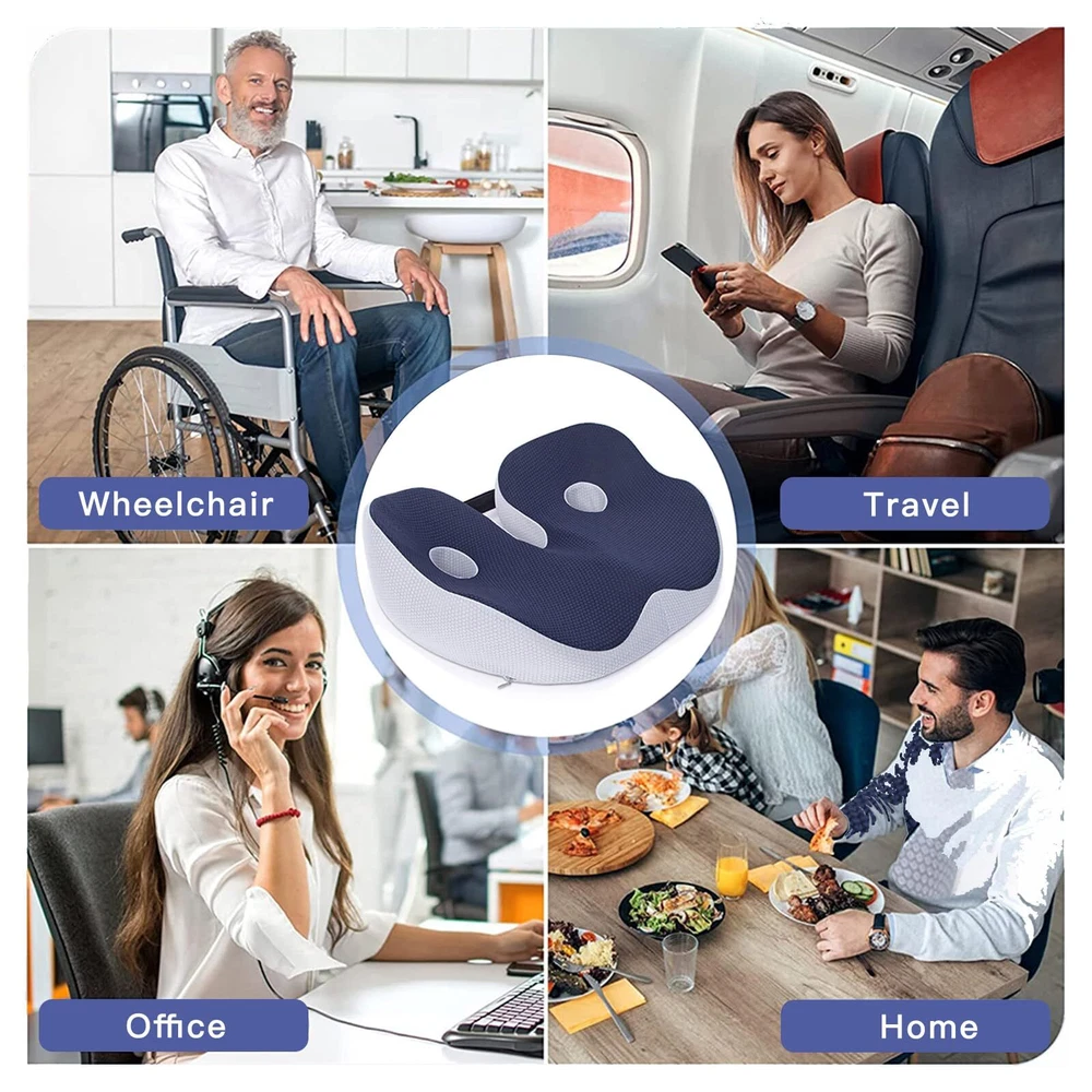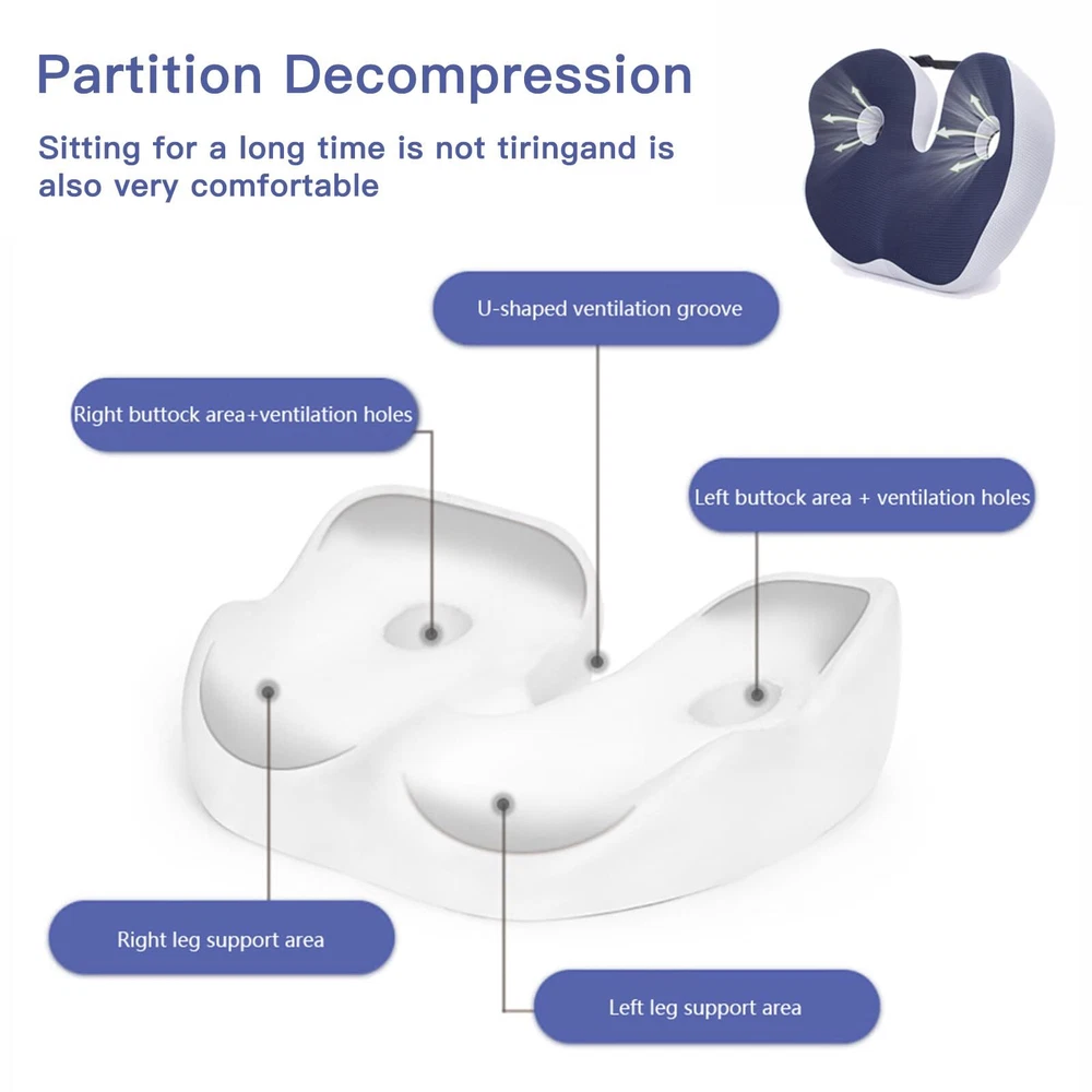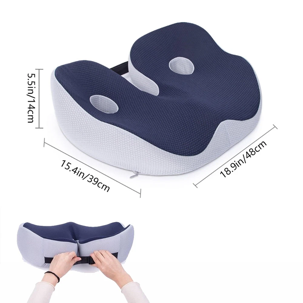【Improve Posture】The ergonomic "U" shaped seat cushion for tailbone pain relief provides support and comfort while it reduces pressure on the lower back, waist and hips and improves your posture. 【Multipurpose】Release the pressure and let the relaxation set in,pressure relief seat cushion is not only a benefit for the coccyx, it is used to relieve your buttocks and back,also ideal during pregnancy or after childbirth. 【Memory Sponge】Our tailbone cushion is made of durable memory sponge, close to the sponge cushion, shock absorption and decompression release, full support, not easy to deform after sitting for a long time (it will slowly rebound after 3-5s). 【Removable Cover Fabrics】The bottom of the butt cushion for pressure relief has a non-slip design,covered in a breathable and washable mesh cover.Simply pull the cover off and throw it into the washing machine. 【Ideal Gift】the tailbone pain relief cushion is a perfect gift for parents,office workers,drivers,students and teachers who sit for a long time.You will find it a perfect solution for kitchen chairs,living room chairs,couches,lounge chairs,office chairs,car seats,airplanes,wheelchairs.