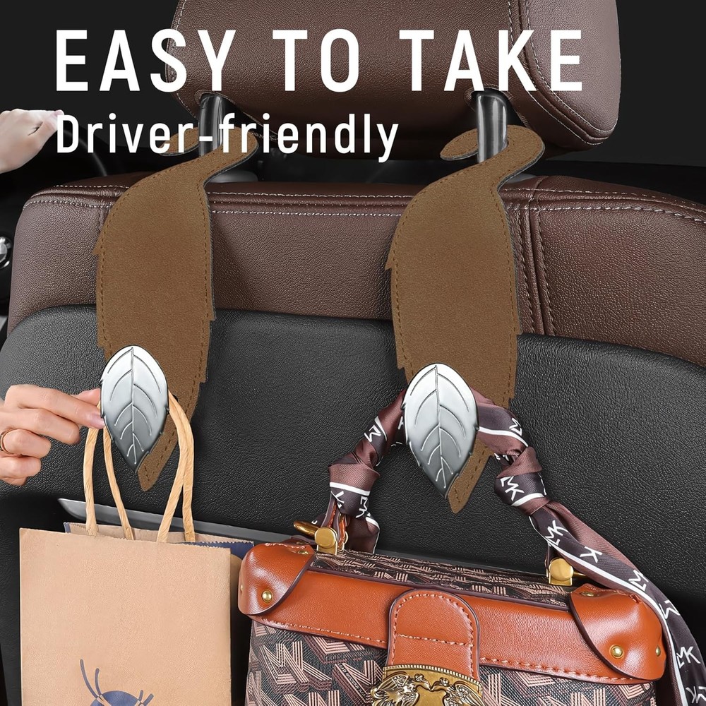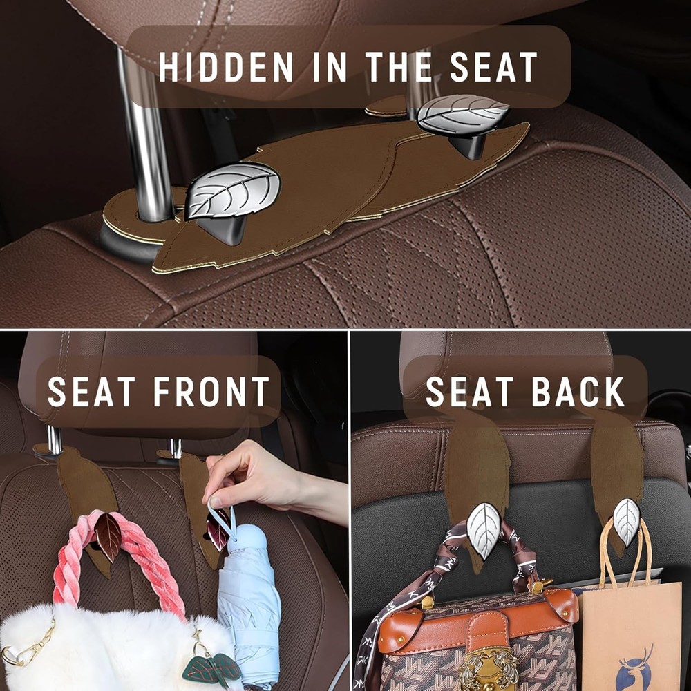 Seat Headrest Hook: 2 Pack Universal Vehicle Storage Hanger-Upgrade Brown