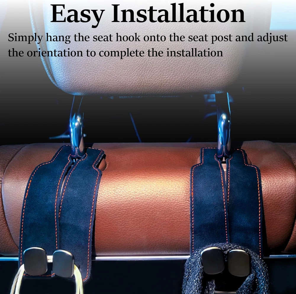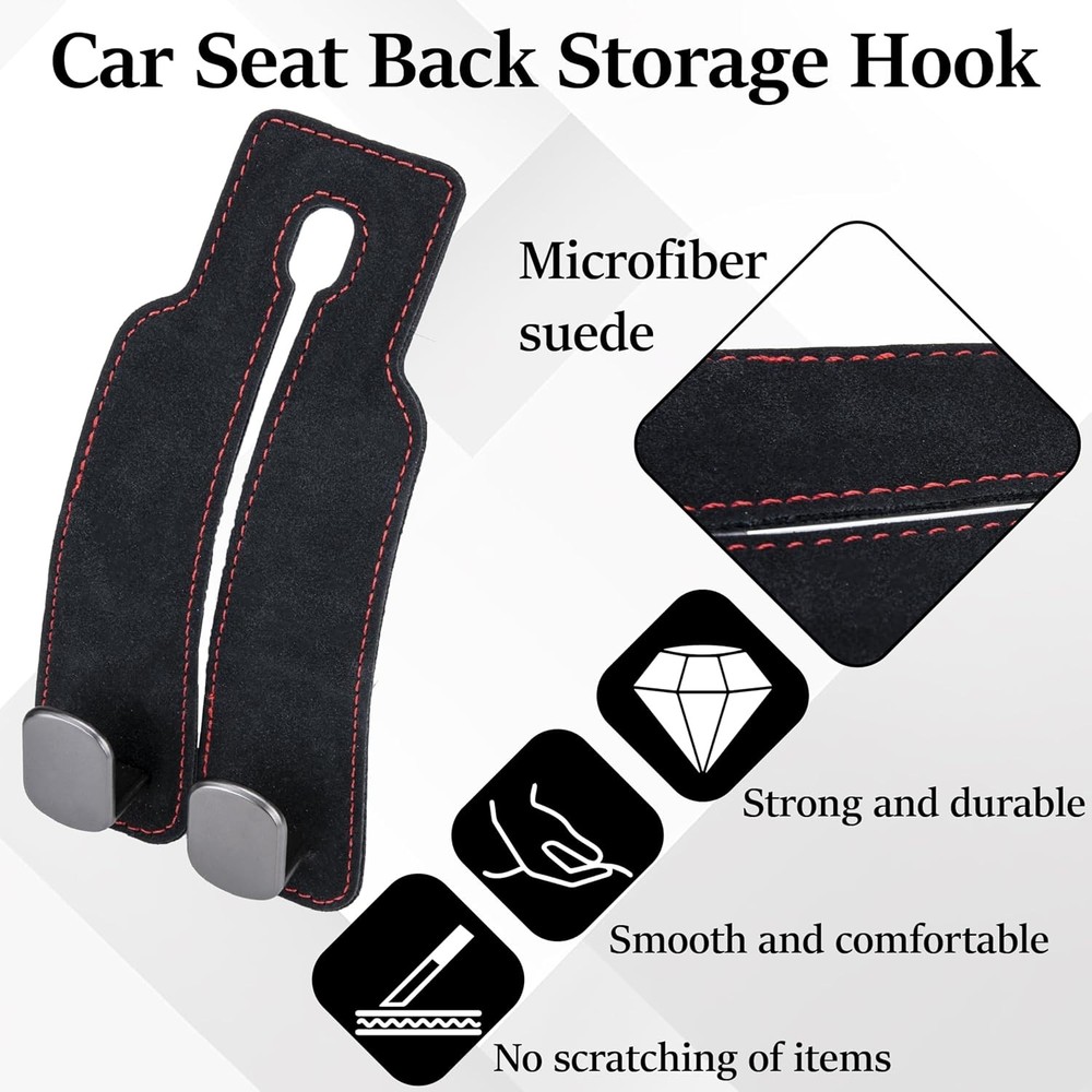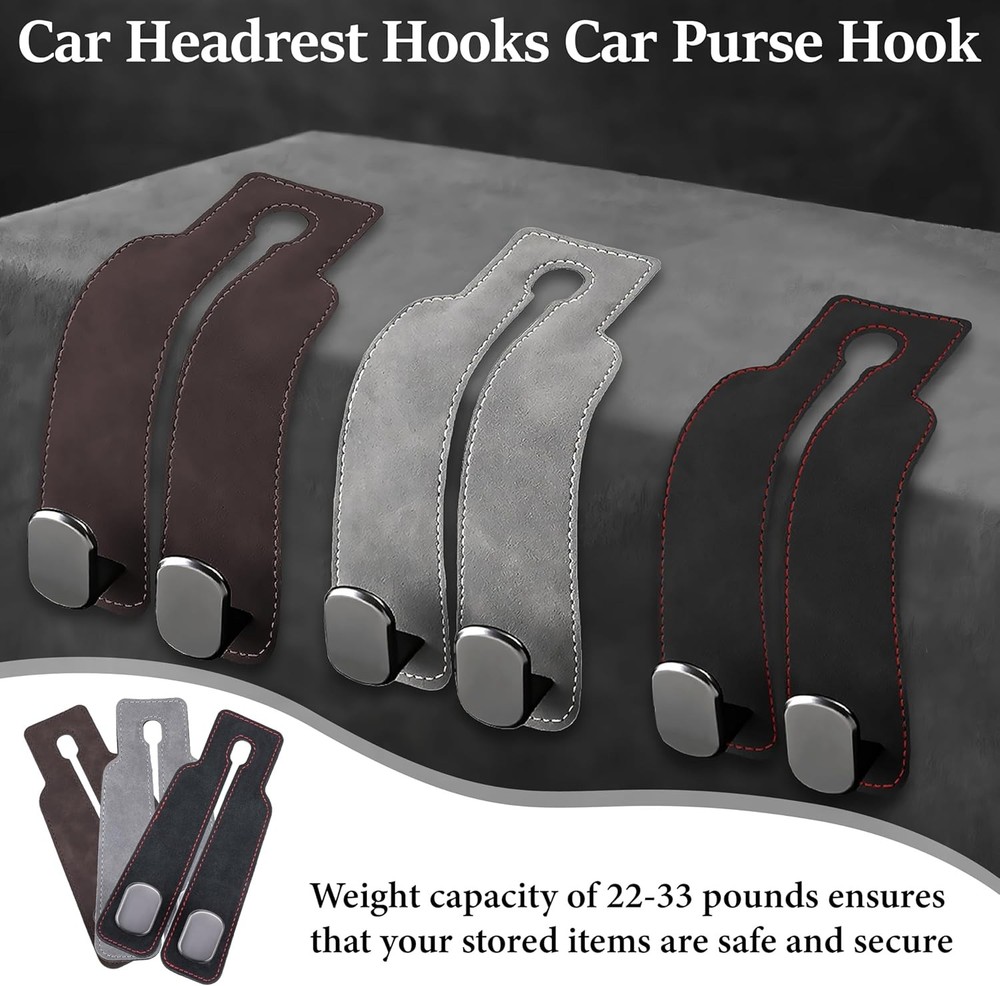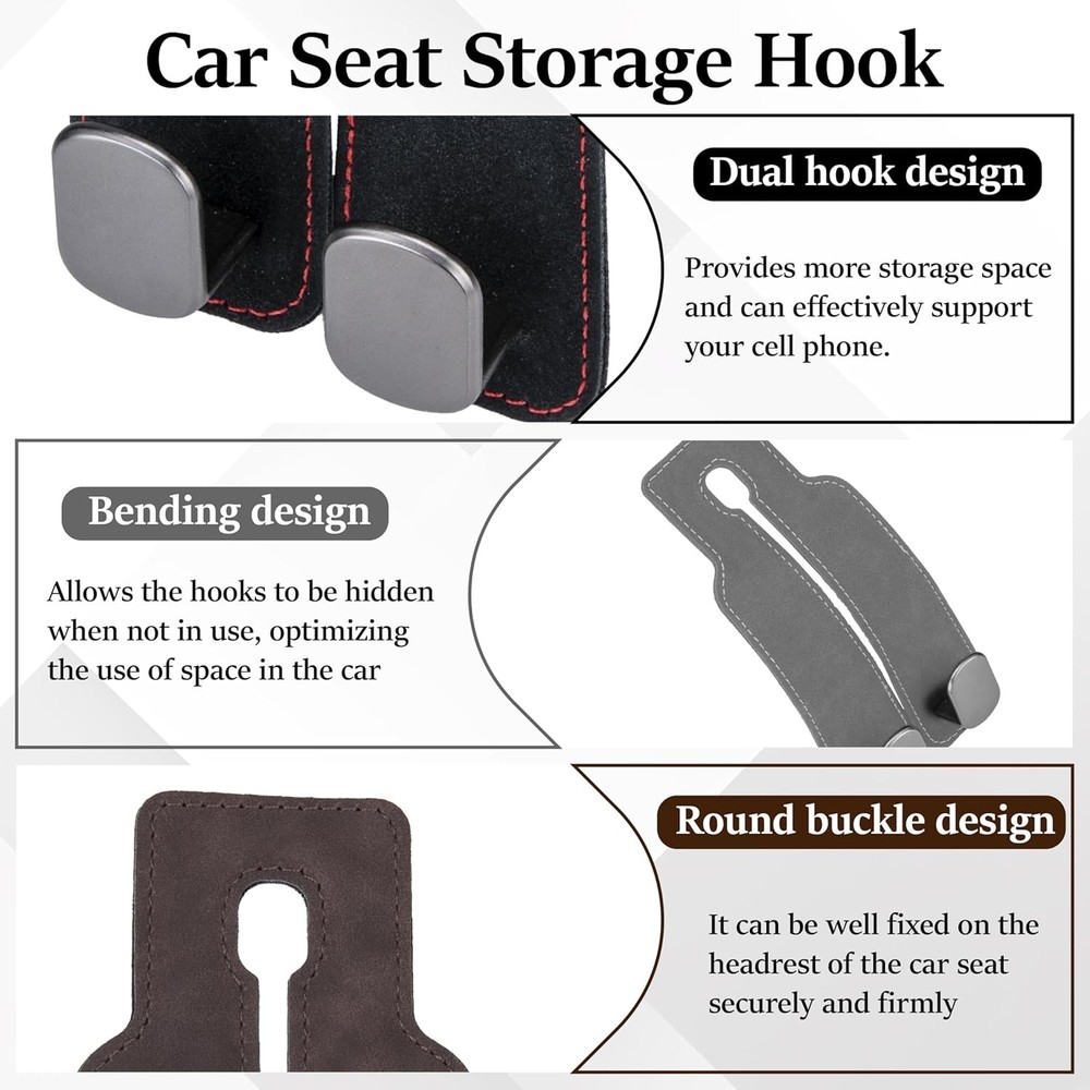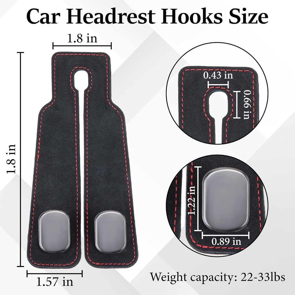 About this item Quality Material: The car seat hook combines suede microfiber with finely polished metal hook and loop fasteners, which is both sturdy and durable, but smooth and does not hurt the items, ensuring that the items you hang are safe and worry-free. Dual Hook Design: The dual hook design of this car seat back storage hook not only provides more storage space but also effectively supports your phone, which functions as both a hook and a phone holder, allowing you to watch videos with ease and free your hands. Efficient Organization: The car seat storage hook's clever bending design allows the hooks to be hidden when not in use, optimizing the use of space in the car, helping you to effectively manage and organize your car's contents, keeping them neat and orderly, with a weight capacity of 22-33 lbs, ensuring that the items you store are safe and reliable. Easy Installation: The car seat hooks for headrest do not require any tools or removal of the headrests; the installation process is quick and easy—just hang the seat pegs onto the seatposts and then adjust the direction to complete the installation, convenient and practical. Wide Applicability: The round hook fits 80% of the car models on the market, widely used for item storage and car organization, preventing tipping over, saving space, able to hold bags and sundries, suitable for organizing the backseat and trunk, ideal for travel and hanging entertainment items. Product Package Dimensions: 0.78"D x 3.18"W x 6.86"H.