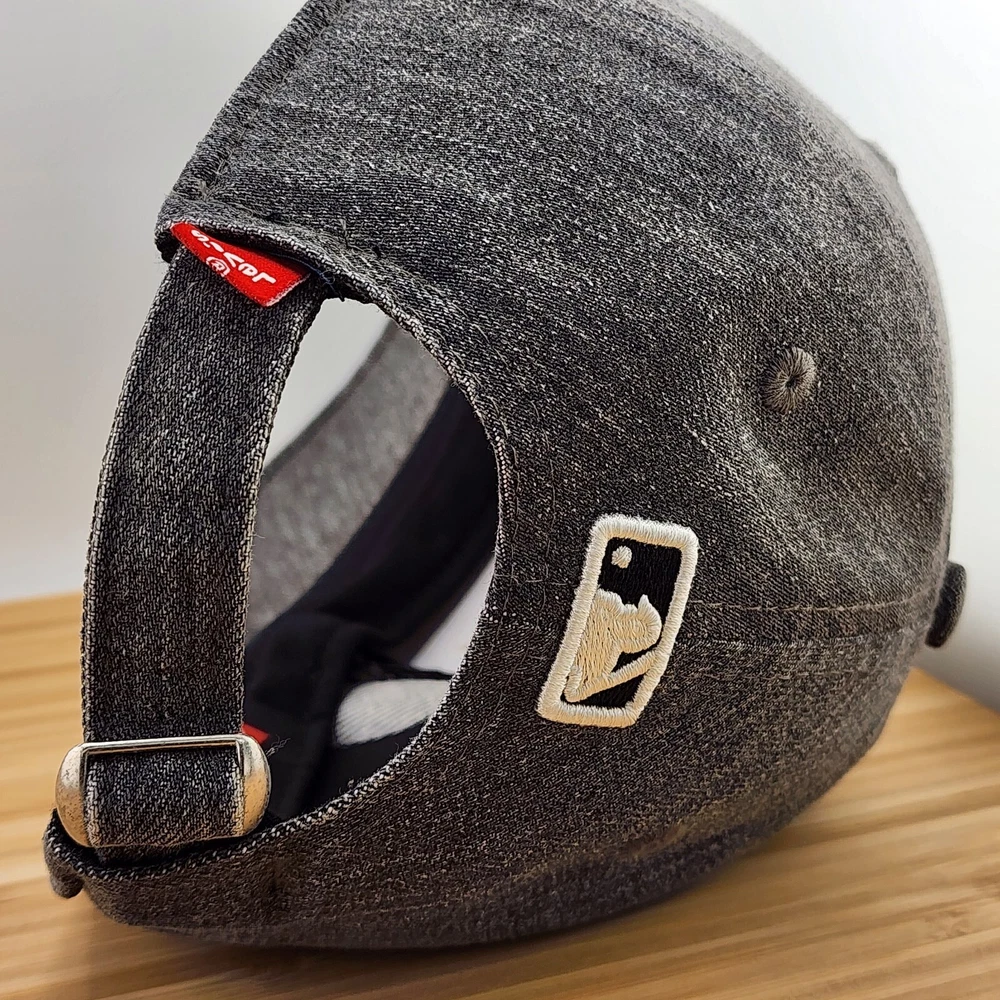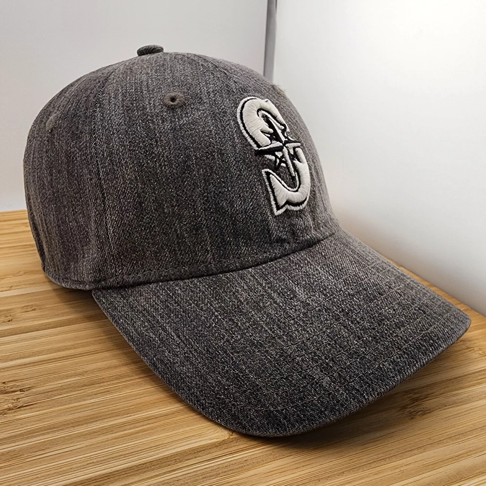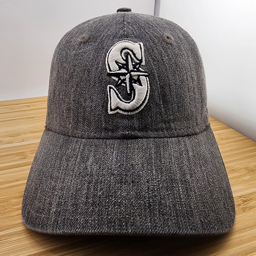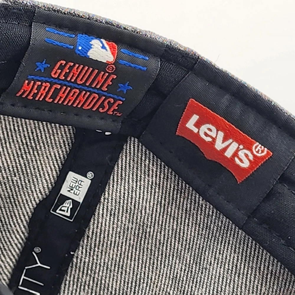 This Seattle Mariners x Levis Collab Hat by New Era is a stylish baseball cap in faded black denim. It features an adjustable strapback for a comfortable fit. The hat is designed in a marine theme, perfect for fans of the Seattle Mariners. Made of denim fabric, this one-size unisex adults' cap is a collaboration piece between the Seattle Mariners and Levis.
