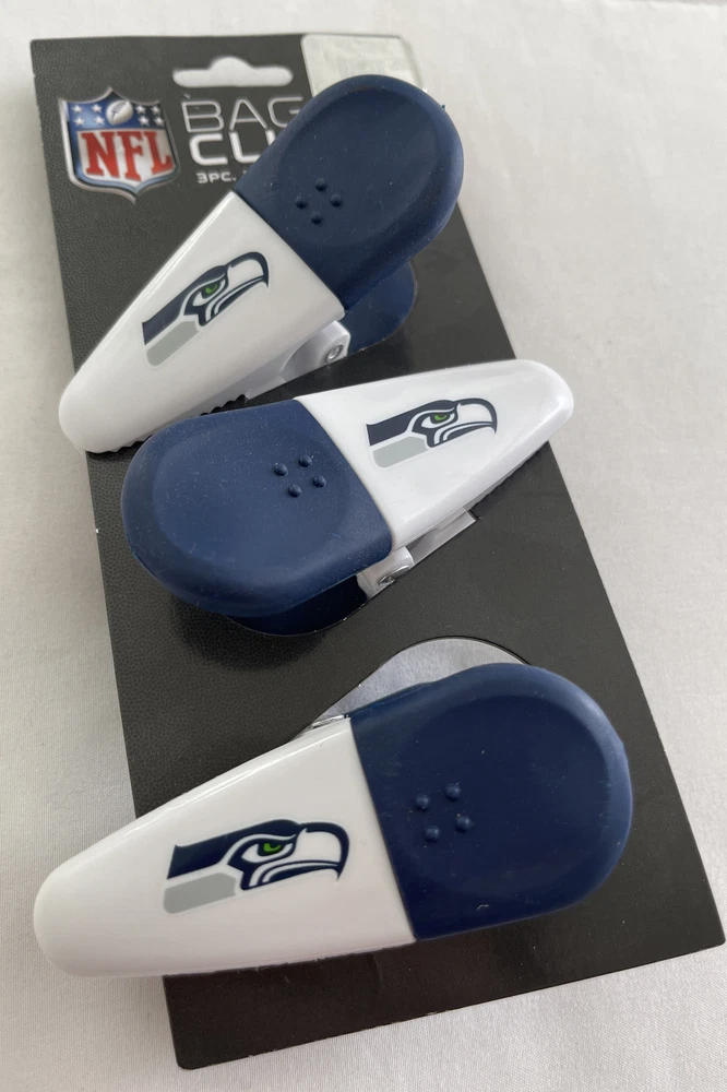 Seattle Sea hawks 3 PC Bag Clips NFL item #11063 Football Fan with magnetic back. Condition is "New". Shipped with USPS First Class.
