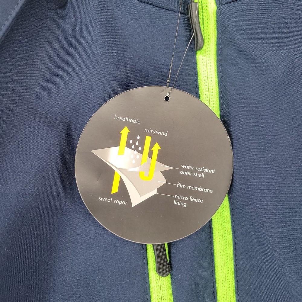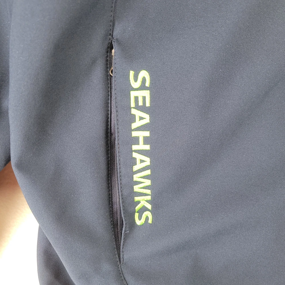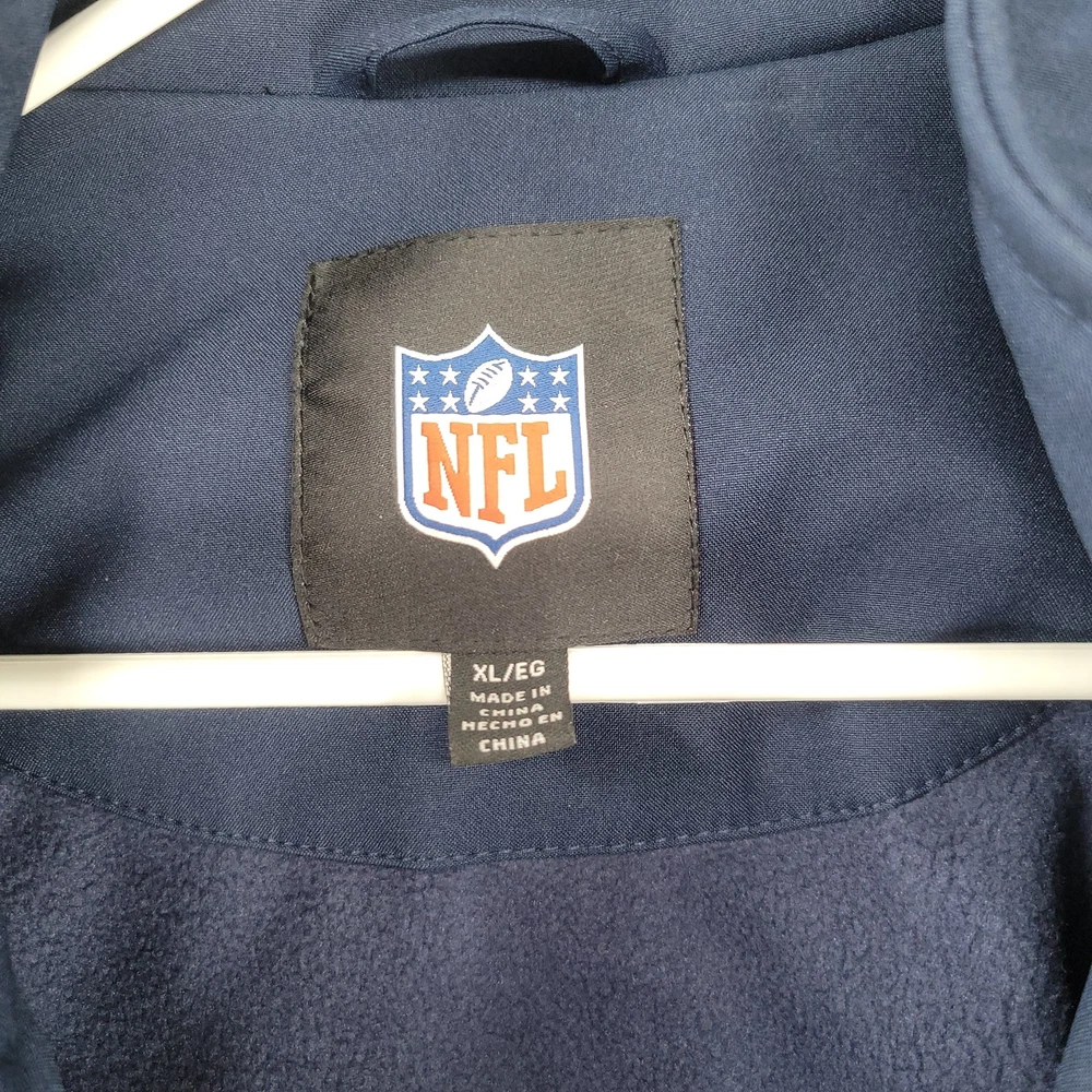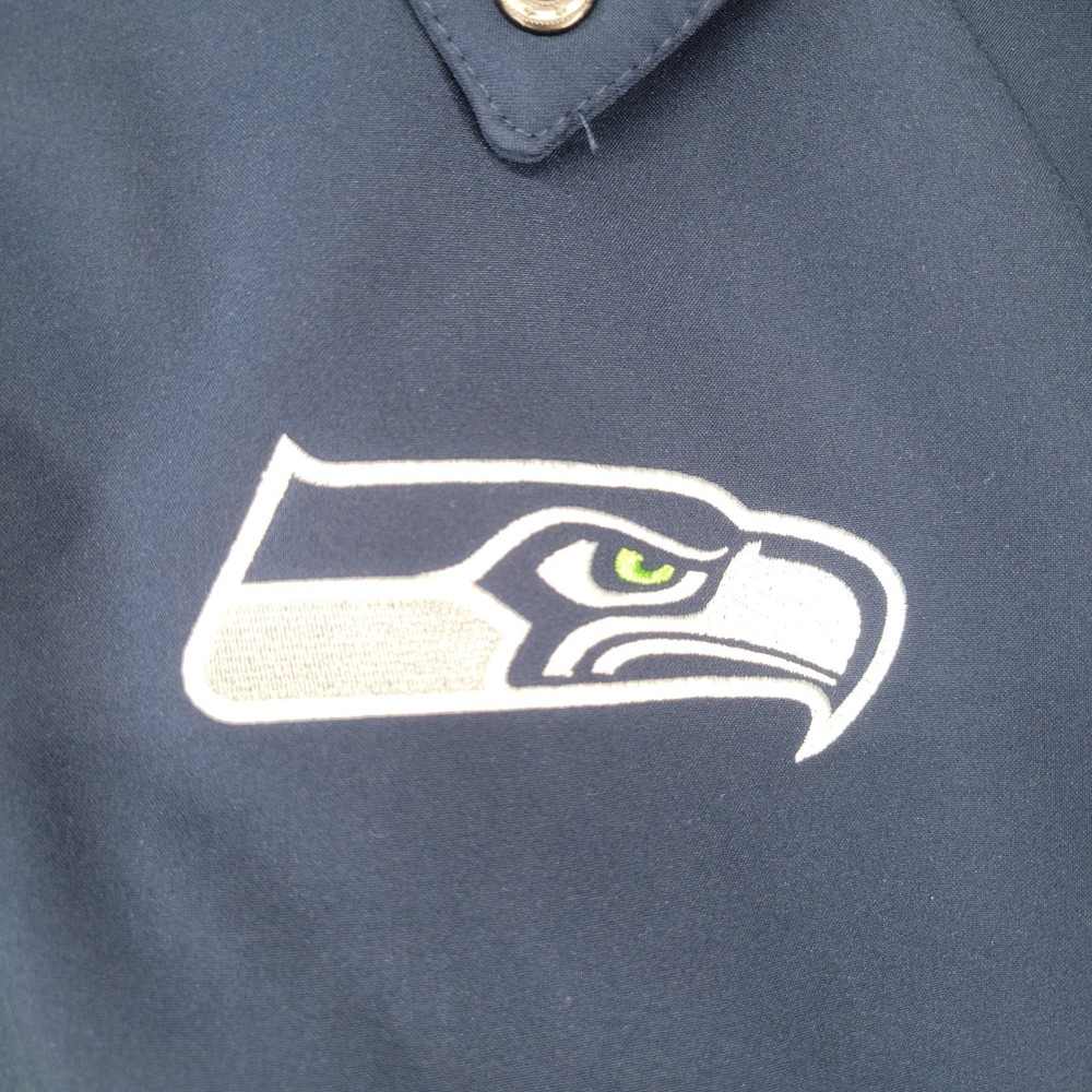 Seattle Seahawks Jacket Mens XL Blue NFL Football Soft Shell Hooded Waterproof Condition: Brand New with Tags This officially licensed NFL Seattle Seahawks soft shell jacket features a 3-layer bonded fabric construction for superior warmth, comfort, and weather protection. The jacket outer layer is water-resistant, with a micro fleece lining and a wind- and water-resistant breathable membrane film insert between. Features an embroidered Seattle Seahawks logo on chest, "SEAHAWKS" text detailing on the lower left, and contrast vibrant neon green zipper details. Hooded design with snap collar, full zip front, zippered chest pocket, and two zip hand pockets. -adjustable cuffs for a custom fit. Shell: Water-resistant outer shell with micro fleece lining Color: Navy blue with neon green accents Size: XL (Mens) Official NFL shield logo on inner neck tag, made in China Approximate measurements: Pit to pit 26", length 31", sleeve length 27" Perfect for layering at games, tailgates, or everyday NFL fan wear