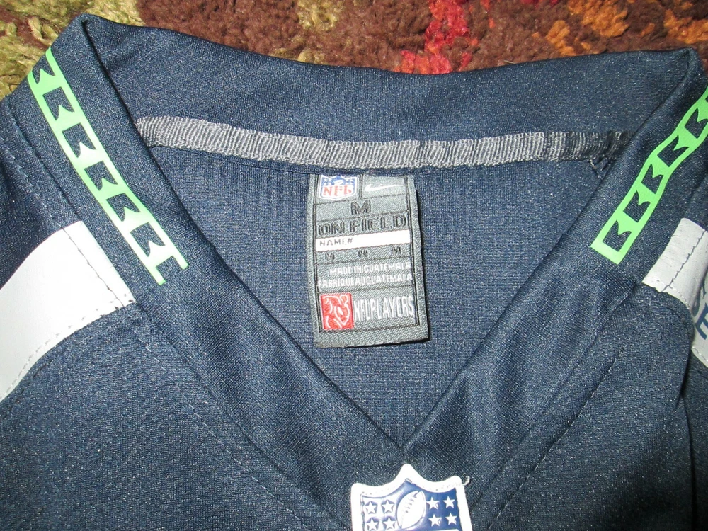 Color:BlueGender:WomenModified Item:NoTeam:Seattle SeahawksPre & Post Season:Regular SeasonSeller Notes:“Good condition Some minor wear mostly on the silkscreen on the shoulders (from it being folded)”Size:MSport:Football-NFLPlayer:NonBrand:Nikegtin13:Does not applyUPC:Does not applyProduct:Jersey