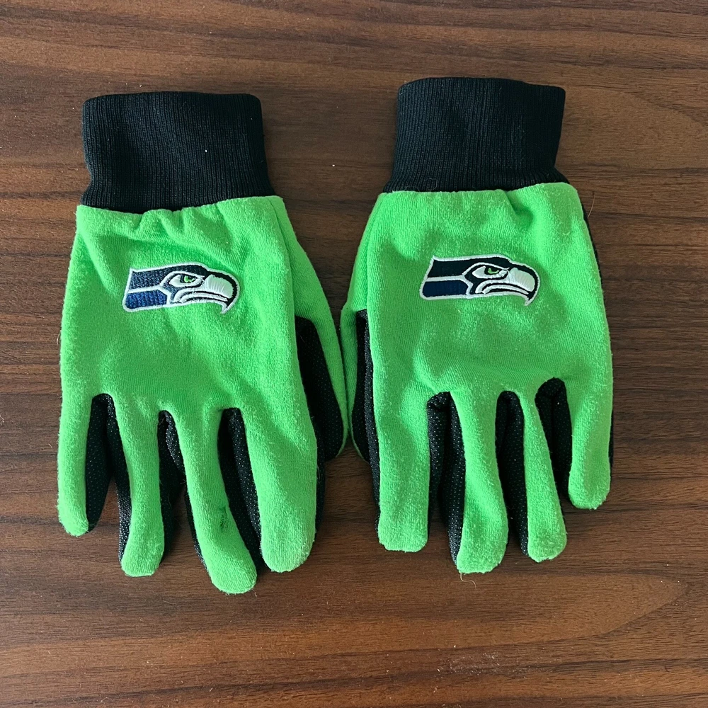 Show your support for the Seattle Seahawks with these officially licensed winter gloves from Forever Collectibles. These neon green gloves are perfect for any NFL fan and feature the team's logo prominently on the front. Made in China, these gloves are available in one size to fit all men. Whether you're heading to a game or just want to show off your team spirit, these gloves are a great accessory for any Seattle Seahawks fan. They're perfect for the regular season and will keep your hands warm in the cold weather. Get your pair today and show your support for the team! Tag Size: One Size Condition: No Noticeable Flaws All items are second hand, many being vintage and may have small imperfections. Anything major is noted. I value great customer service so please reach out if you have any questions