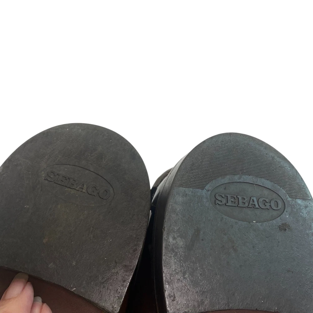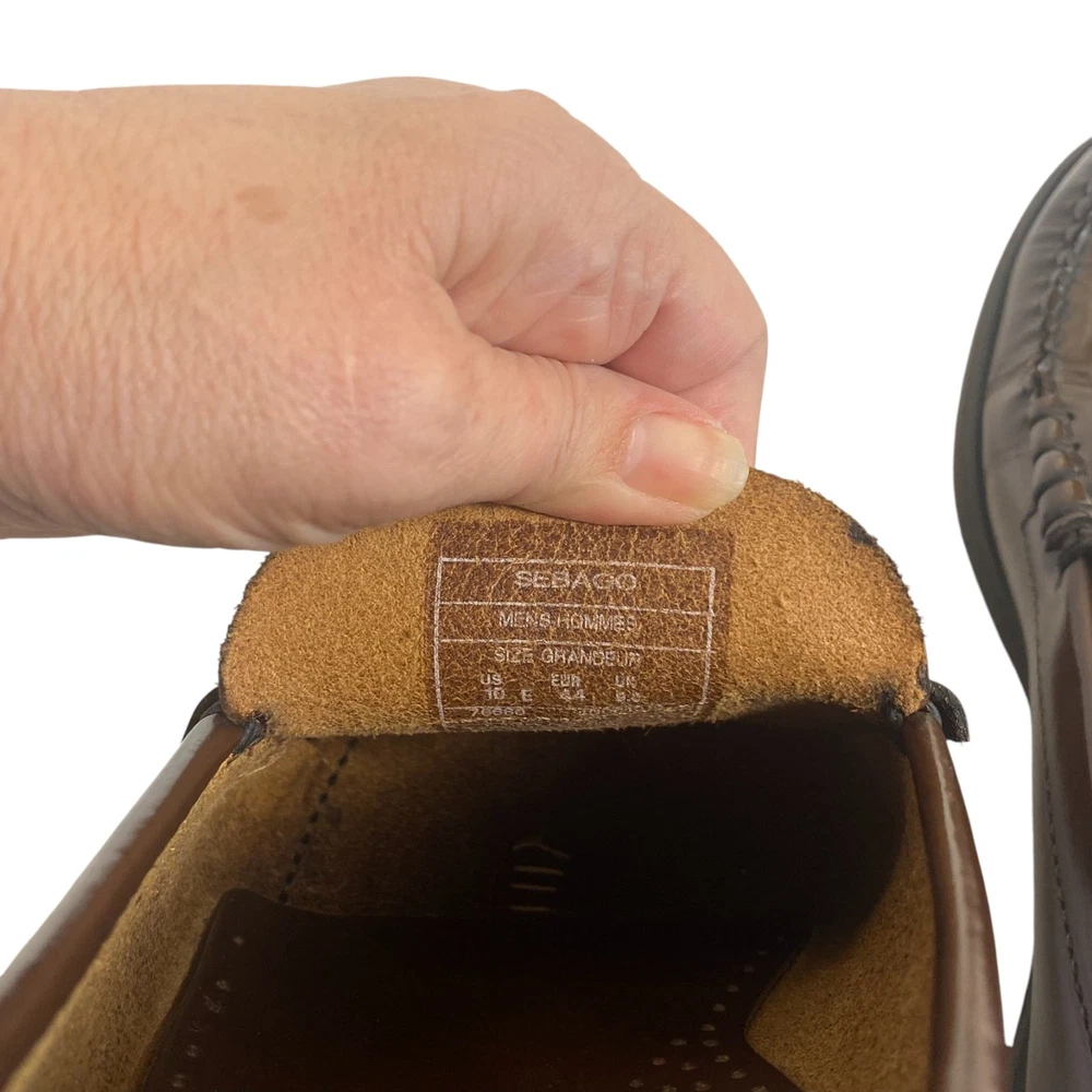 Step into refined heritage style with these Sebago Handsewn Leather Penny Loafers. Expertly crafted in the Dominican Republic, this classic pair features a traditional moc-toe silhouette and timeless penny strap — a nod to vintage Americana and Ivy League prep. Rendered in a rich, versatile brown, these loafers easily complement everything from chinos and denim to casual suiting. The full leather construction — upper, lining, insole, and sole — offers durability and comfort in equal measure. Sized 10E for a wider fit, they feature a solid round toe and stitched detailing that speaks to Sebago’s legacy of quality craftsmanship. Whether you're channeling a nerdy-prep aesthetic or dressing for understated polish, this pair adds substance and style to any well-curated wardrobe. Gently used. See photos for condition details. Smoke and pet-free home. Please message with questions. Check out my other listings for more great things! I list new things daily.