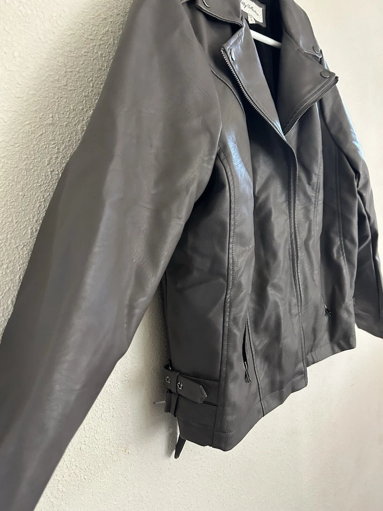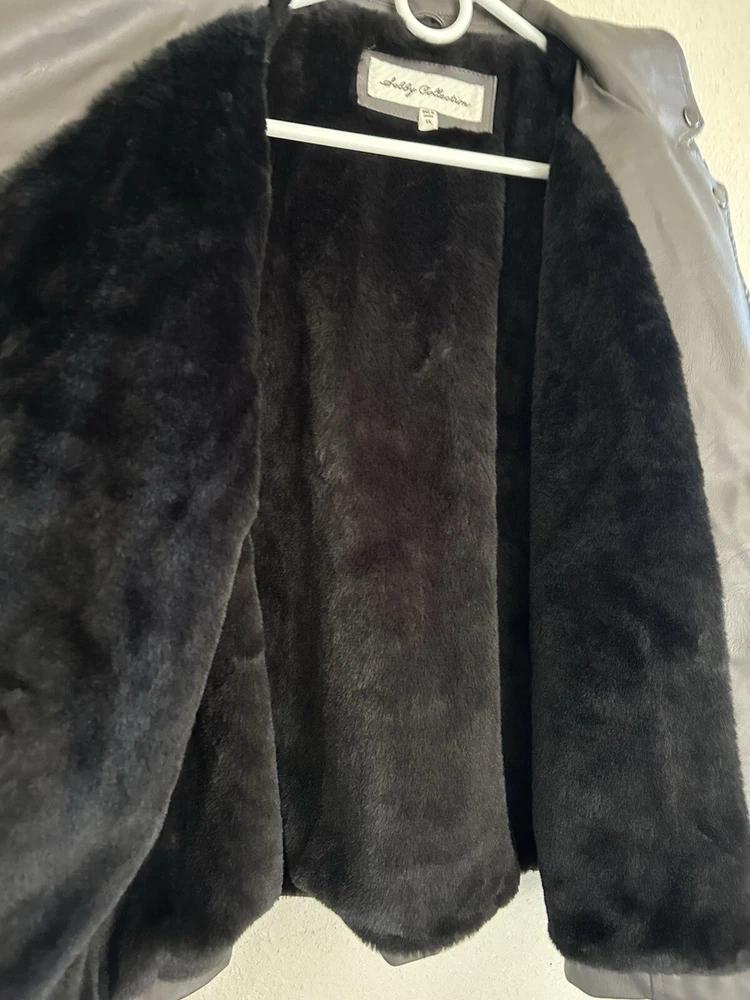 Sebby Collection Faux Leather Jacket Size 1x Long Sleeve Lined. Condition is Pre-owned. Shipped with USPS Ground Advantage.