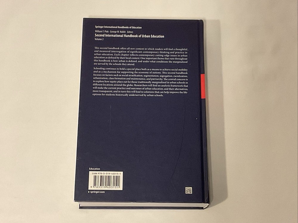 Book condition: Brand new, never used. Notes: Hardcover, Volume 2 of 2. From Springer (Publisher): This second handbook offers all new content in which readers will find a thoughtful and measured interrogation of significant contemporary thinking and practice in urban education. Each chapter reflects contemporary cutting-edge issues in urban education as defined by their local context. One important theme that runs throughout this handbook is how urban is defined, and under what conditions the marginalized are served by the schools they attend. Schooling continues to hold a special place both as a means to achieve social mobility and as a mechanism for supporting the economy of nations. This second handbook focuses on factors such as social stratification, segmentation, segregation, racialization, urbanization, class formation and maintenance, and patriarchy. The central concern is to explore how equity plays out for those traditionally marginalized in urban schools in different locations around the globe. Researchers will find an analysis framework that will make the current practice and outcomes of urban education, and their alternatives, more transparent, and in turn this will lead to solutions that can help improve the life-options for students historically underserved by urban schools. Publisher price: $599 + tax (Hardcover) See publisher website for full contents and descriptions at: https://link.springer.com/book/10.1007/978-3-319-40317-5?page=4#toc