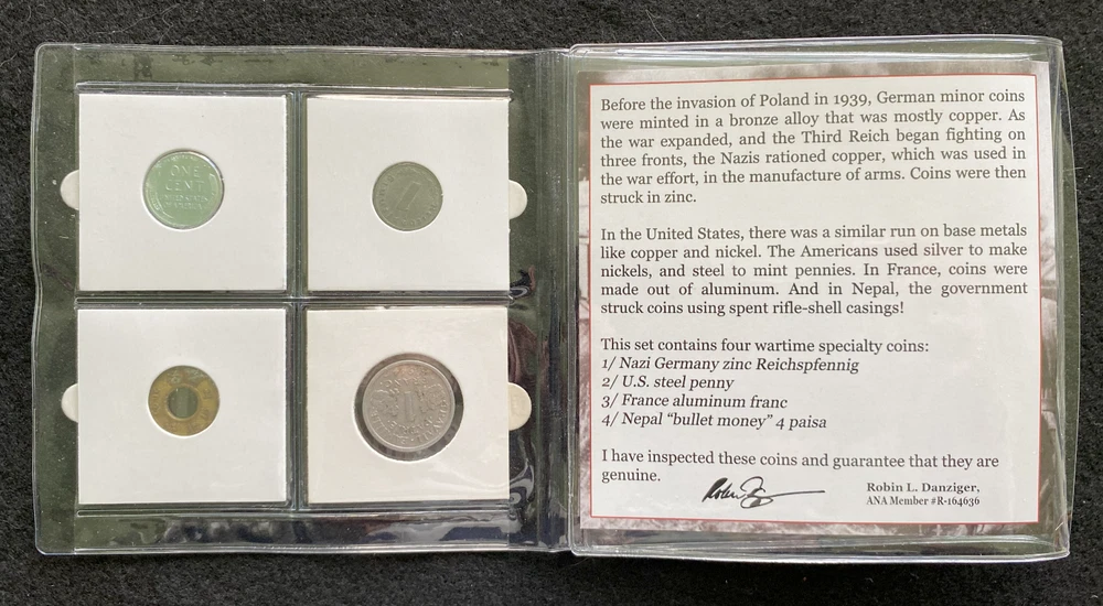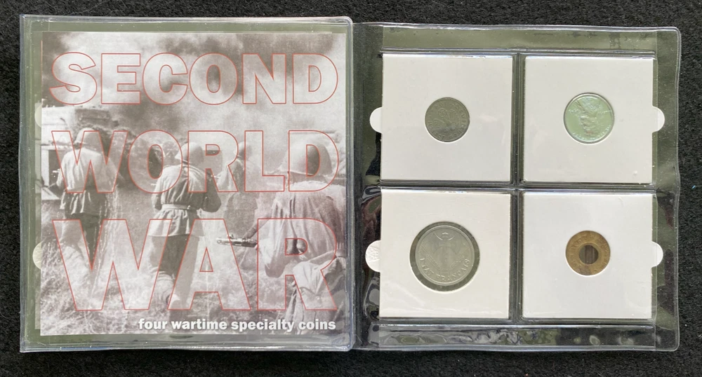 Second World War: Four Wartime Specialty Coins COA & History & Album Included Note - These are ancient coins, the coins you will receive may have different aging mark,mint, and year.. Please see all the pictures for details. Catchy Collections