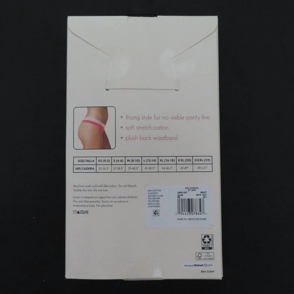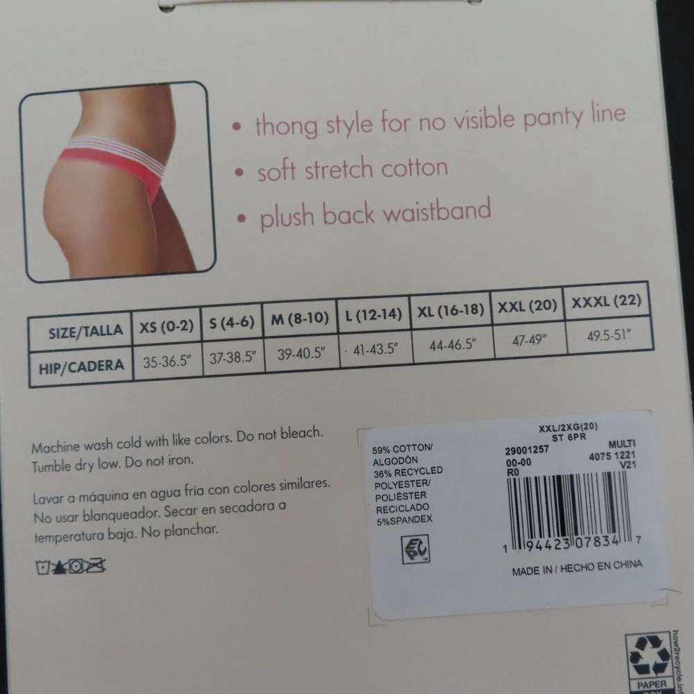 Secret Treasures Women's size 20, XXL 6 Pair of cotton blend stretch thongs Animal print design *please see photos for fabric content and washing instructions Condition: smoke free home, NEW- in box Please review all photos closely as these will be the best description of the item. Thank you for shopping!