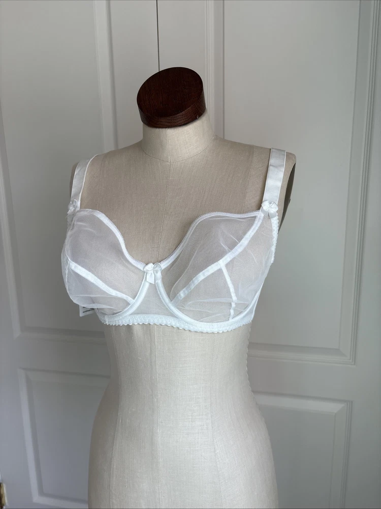 The Sheer Seduction Full Cup Bra uses 3 section cups for a super supportive sexy bra. This bra is supportive enough to be your favorite everyday bra, while the sheerness adds charisma for a special occasion Production Sample Ivory Size 34DD