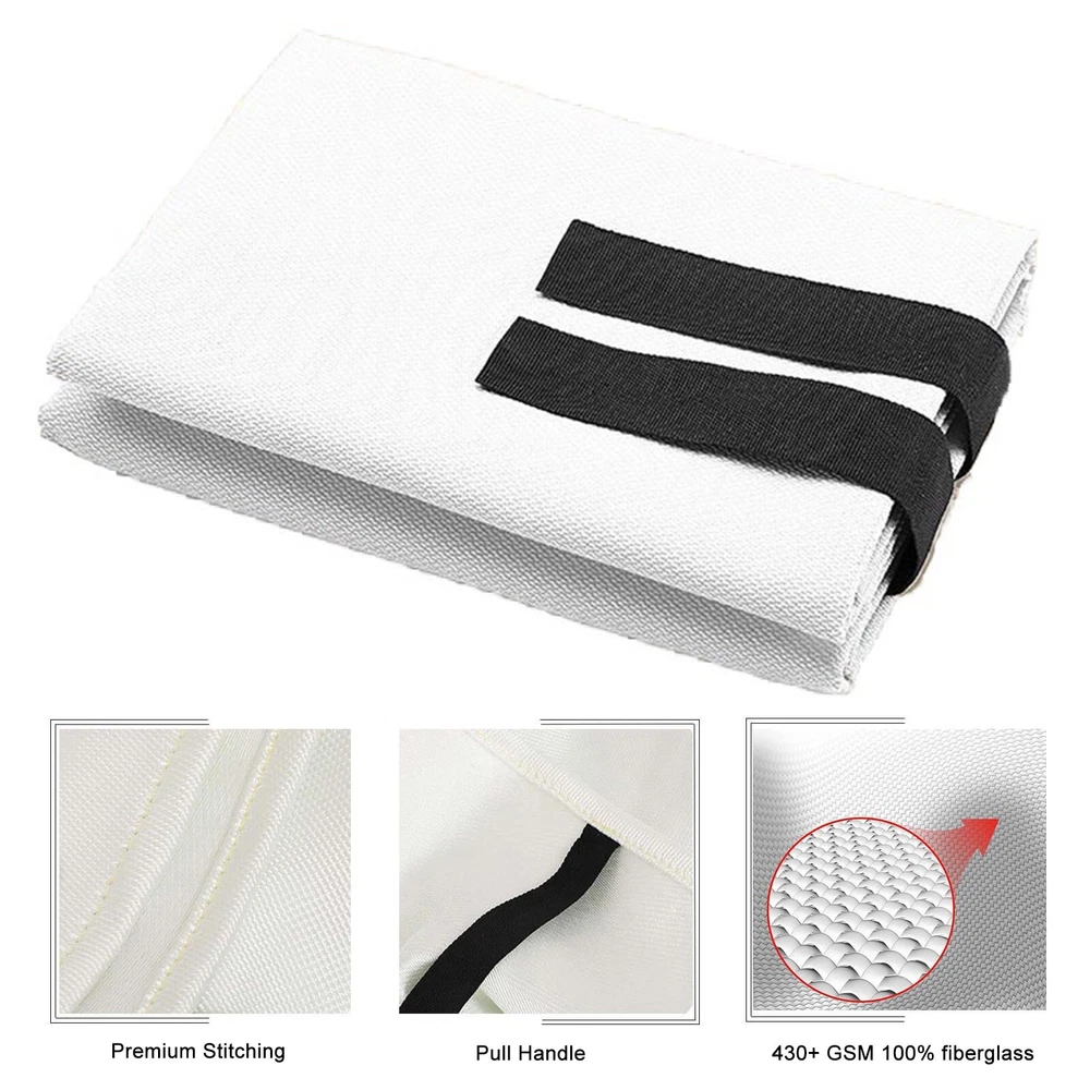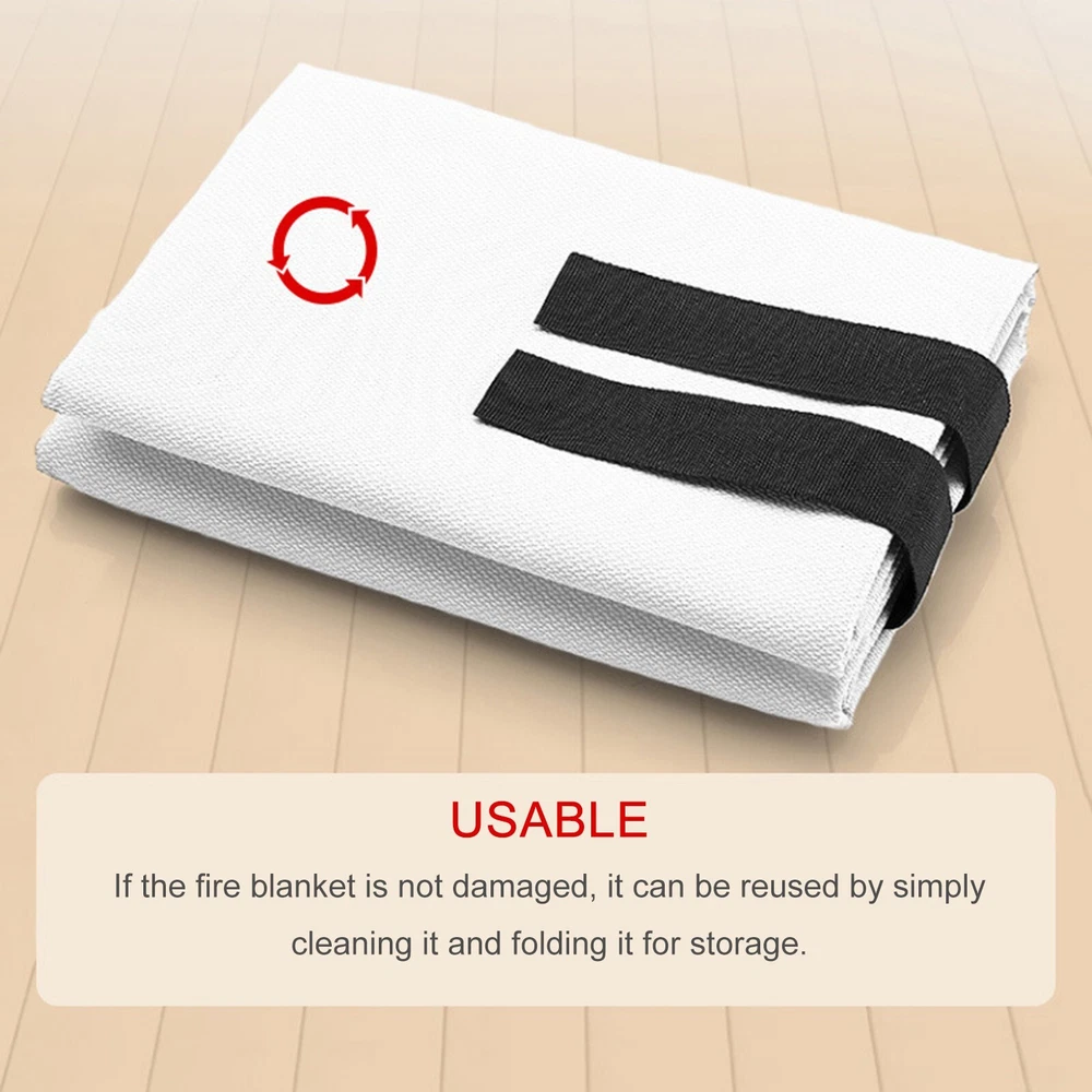 Secure Extinguishing Shield Fiberglass Fire Blanket for Home and Camping DESCRIPTION Description: * Great Fire Protection: Shields you from flames, enduring high temperatures and direct flame exposure. for common use scenarios like kitchen fires. * Ease of Use: Just pull the tabs and drape over the fire. Ensure complete coverage for effective extinguishing. * Superior Quality: Made of 430+ GSM fiberglass, our fire blanket resists up to 1022°F. Meets EN 1869:1997 standard. * Versatile & Safe: Perfect for home, office, camping, and more. Safe for adults, children, and pets. A must-have in your fire safety kit. Specification: Material: Fiberglass QTY: 1PCS Blanket Size: 1 * 1m / 3.3 * 3.3ft, 1.5x1.5M , 2x2meters [options] Color: White Thick: 0.4mm Temperature Resistance: 550℃ / 1022 ° F Unit Weight: 300g / 10.6oz Package Includes: 1* Fire Blanket Note: 1. The real color of the item may be slightly different from the pictures shown on website caused by many factors such as brightness of your monitor and light brightness. 2. Please allow slight manual measurement deviation for the data. POLICES Shipping Payment WARRANTY We only ship to confirmed ebay Order addresses. Please comfirm that your Order address is in line with your shipping address. Please kindly note that the combined shipping is not provided because the shipping fee is calculated by weight. Also, the each additional item means exactly the the same color and size. It takes about 7-15 working days to Canada; about 10-30 working days to other countries. Transit time may be a little delayed because of the bad weather and customs inspection. If you do not receive your item within 30 working days since payment finished, please contact us immediately for further assistance. Payment must be completed within 5 days. If you have any problems about payment, please contact us via ebay message. We strive for 100% customer satisfaction! Positive Feedback is very important to us. If you have any questions, please feel free to contact us via "Ask seller a question" . We will reply your email within 24 working hours.