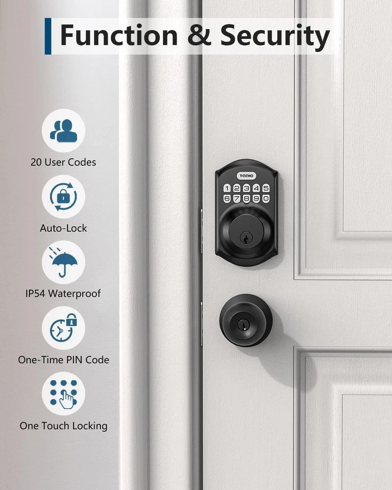 Secure TE001 Keypad Deadbolt Lock for Front Door - Waterproof & Easy Install ‹ › ‹ › ‹ › ‹ › ‹ › ‹ › ‹ › ‹ › ‹ › Secure TE001 Keypad Deadbolt Lock for Front Door Introducing the epitome of elegance and security for your home – the Secure TE001 Keypad Deadbolt Lock. This advanced locking solution marries sophistication with cutting-edge technology, ensuring your family’s safety while exuding modern charm. Key Features: Passcode Entry: Enjoy convenience with 20 customizable access codes suitable for family use and an exclusive temporary code for single-use guest entry. One-Time Code: Enhance security further with a one-time PIN code for visitors, automatically deleted post-use for peace of mind. Smart Locking: Choose your locking time with an automatic door lock that can be configured to secure in 10-99 seconds. Experience seamless efficiency with one-touch auto-lock – a simple press and hold of any key for 2 seconds. Robust Security: Built from sturdy aluminum alloy and designed for durability, this lock boasts weather resistance (), low battery indicator, and anti-peeping code protection, offering unwavering control over your home’s security. Installation Made Effortless: Assembly takes just minutes with a screwdriver. Designed for ease, perfect for anyone – man or woman! Why Choose Secure TE001? Your home deserves a lock that is both beautiful and functional. The Secure TE001 Keypad Deadbolt Lock not only enhances the aesthetic of your home but also elevates the security features you need. With a solid lock cylinder and compatibility only with standard 2-1/8" (54mm) door holes, it embodies a perfect blend of safety and sophistication. Additionally, take comfort in knowing offers a 1- and devoted customer service, including dedicated phone support and 24/7 online assistance. Unlock the future of smart living with the Secure TE001 Keypad Deadbolt Lock – because your home is a sanctuary that deserves the finest protection. Shipping Free & Fast Shipping - We offer free shipping to most of the USA with a normal delivery time of 3-7 days. However, due to the current situation, additional delivery time (up to 3 weeks) may be required for some items. Alternative Carriers - We may use alternative carriers (e.g. USPS, FedEx, UPS, etc.) to ensure your package arrives safely and on time. Due to the use of multiple carriers, we are unable to provide a tracking number automatically. Handling Time - Orders are processed and shipped within 1-2 business days of receiving cleared payment. Shipping Restrictions - Shipping to Alaska, Hawaii, Puerto Rico, Guam, and other US territories may incur shipping charges or delivery restrictions. Please contact us before ordering, or your order can be refunded/cancelled. State Restrictions - There may be restrictions based on your state of purchase. For example, certain items may not be shipped to California due to state regulations. Contact for Tracking Updates - If you require tracking updates or have any concerns about the delivery of your order, please feel free to contact us, and we will be happy to assist you. Return 30-Day Hassle-Free Returns - We want you to be completely satisfied with your purchase. If you are not, you can return the item within 30 days of receiving it for a full refund or exchange. Easy Return Process - To start a return, simply contact us and we will provide you with a prepaid return shipping label and detailed instructions. Restocking Fee - There are no restocking fees for returns. However, the buyer is responsible for return shipping costs if the return is not due to a seller's error. Refund Processing Time - Refunds will be processed within 5 business days of receiving the returned item in its condition. Payment We accept all major credit cards, PayPal, and Apple Pay for your convenience. Your payment information is secure and encrypted to ensure a safe and seamless transaction. Please complete your payment within 3 days of purchase to avoid any delays in shipping. Feedback Your feedback is extremely important to us. We strive to provide the best products and customer service possible. If you are satisfied with your purchase, please take a moment to leave us a positive review. If you have any concerns or issues with your order, please contact us before leaving negative feedback. We are committed to resolving any problems and ensuring your satisfaction. Contact Us If you have any questions or concerns, please feel free to out to our customer support team. You can contact us through the eBay messaging system. We are available Monday to Friday, 9:00 am to 5:00 pm EST, and we will do our best to respond to your inquiry within 24 hours. Buy it now and enjoy a pleasant shopping experience! Model: Keyless Entry Door Lock Unit Quantity: 1 Material: Aluminum,Aluminum Alloy Suitable For: Commercial,Front Door,Residential,Indoor Door Lock,Outdoor Door Lock Mounting: Side Mount,Universal Features: Easy to Install,Keyless,Auto Lock,Low Battery Indicator,Back-lit Keypad,One-time Access Code,Door Locking Feature,One-touch Lock,Vacation Mode,Mute Mode,Wrong Entry Limit,Weather Resistance,Chemical Resistance,Water Resistance,User Code Access,Automatic Locking,Programmable Codes,Temporary Codes,Anti-Peeping Security,Low Battery Alert,Easy Setup,Touch Control Items Included: Hardware,Instructions,Key,TE001 Deadbolt Door Lock,2 Standard Keys,Latch,Strike Plate,Installation Instructions,Programming Instructions Type: Keyless Entry Door Lock Color: Matte Black Finish: Matte Item Height: 1.3 Inches Cross Bore Diameter: 2.125 in Number in Pack: 1 Style: Traditional Item Depth: 1.3 in ANSI Grade: ANSI Grade 2 (Better) Item Weight: 16 oz