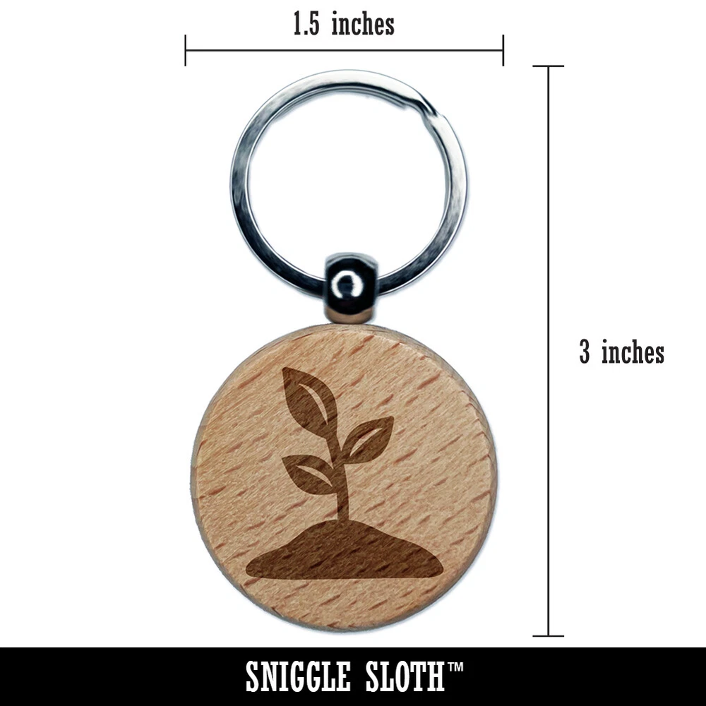 Seedling Growing Plant Engraved Wood Round Keychain Tag Charm