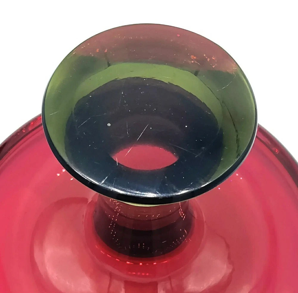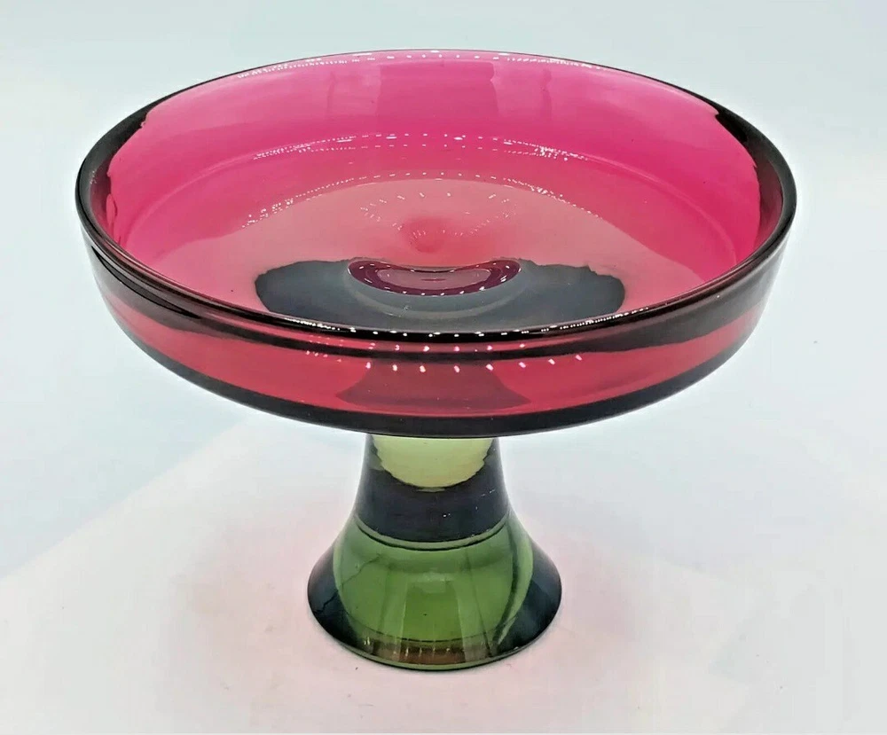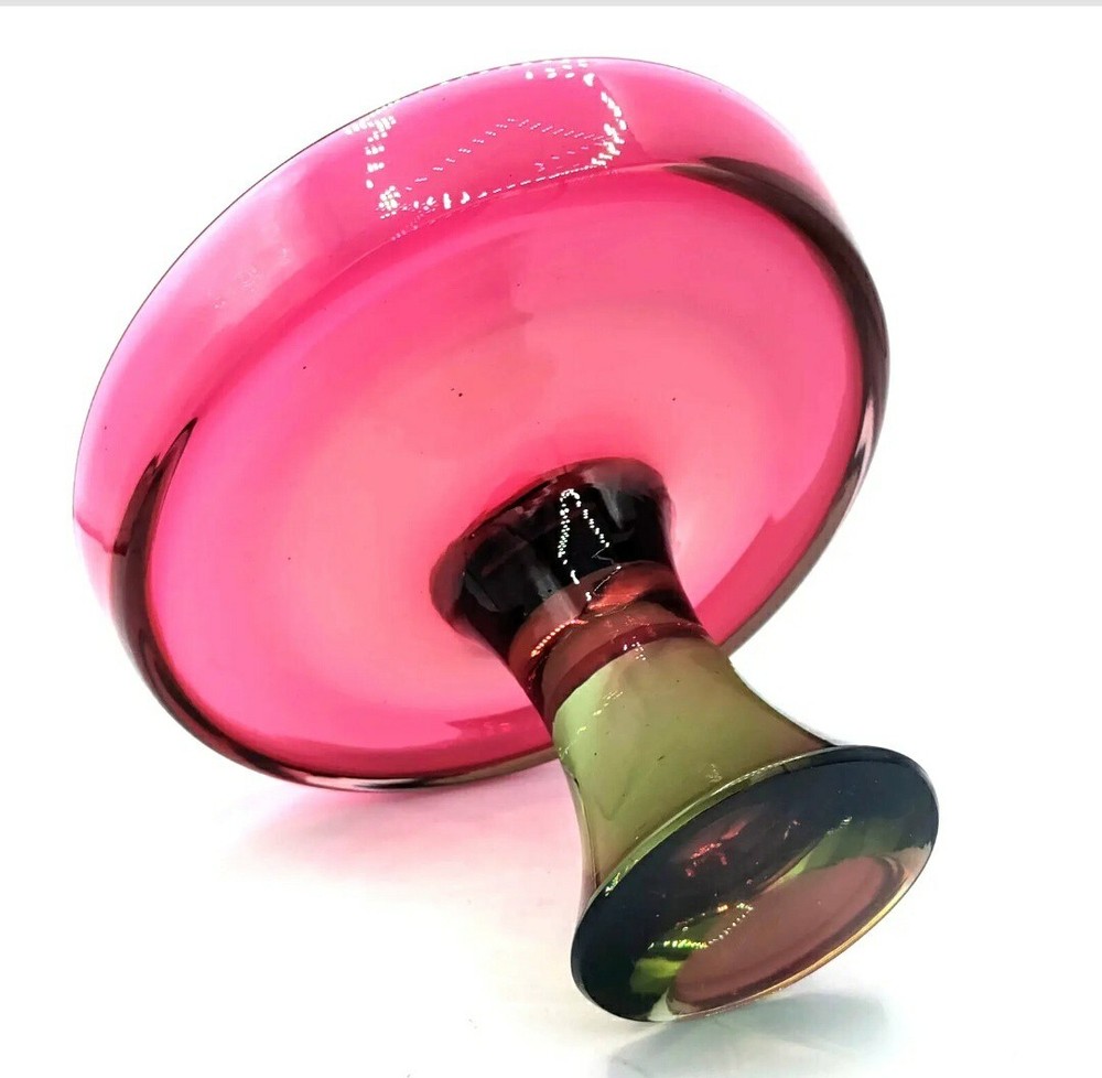 Seguso Vetri d'Arte Murano Sommerso Pedestal Compote Dish 1960s This is a beautiful Murano pedestal dish, according to the Murano glass group I sent pictures to, this is most probably manufactured by Seguso Vetri d'Arte 1960's. Here is what a group expert said " The olive green/grey is reminiscent of SVdA and Cenedese pieces made in the 1960's. Mario Pinzoni used it alot when he took over from Poli. Cenedese has used similar in sommerso etc The watermelon/pink glass reminds of colours used by Cenedese (especially in Scavo pieces). It looks a bit pink for SVdA but it could have a translucent opalina covering that would change the violet/ruby colour they use." I call it my watermelon compote, the color is the prettiest raspberry red and green, all one piece. Wouldn't you say this is perfect for Christmas! Watermelon Colors too!! Measures 7-1/4" tall x 5-1/4" across. Weighs 2 pounds 9 ounces. Excellent condition, no chips or cracks. there is some scratches on the super highly polished bottom as shown in the photo. Please message me if you have any questions, Thanks for viewing!