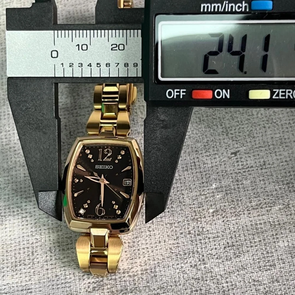 Seiko LUKIA SSVW128 Women's Solar Radio Diamond Tonneau Watch Gold/Black Key Features ## Product Title: Seiko LUKIA SSVW128 Women's Solar Radio Diamond Tonneau Watch - Gold and Black, Authentic, Excellent Condition ## Product Description: This is a beautiful and highly functional Seiko LUKIA SSVW128 women's watch, featuring a sophisticated tonneau-shaped case with elegant gold-tone finish and a striking black dial adorned with sparkling diamonds. This authentic, pre-owned timepiece combines precise solar-powered movement with radio-controlled accuracy, making it an ideal choice for both daily wear and special occasions. ### Key Features and Benefits: - **Brand:** Seiko LUKIA - **Model:** SSVW128 - **Movement:** Solar Radio-controlled (Eco-friendly and highly accurate) - **Case Shape:** Tonneau (Barrel-shaped) - **Case Material:** Gold-tone stainless steel - **Dial Color:** Black with diamond accents - **Band Material:** Gold-tone stainless steel - **Band Color:** Gold - **Water Resistance:** 10 ATM (100 meters), suitable for daily use - **Additional Features:** Diamond-studded dial, automatic time reception, no need for manual time adjustments ### Technical Specifications: - **C:Material:** Stainless Steel (Gold-tone) - **C:Dial Color:** Black - **C:Belt Color:** Gold - **C:Movement:** Solar Radio-controlled - **C:Water Resistance:** 10 ATM - **C:Case Shape:** Tonneau - **C:Model Number:** 1B32-0AE0 - **C:Additional:** Diamond accents on dial, includes box, warranty card, and instruction booklet ### Condition: This watch is in excellent used condition with minimal signs of wear. It has been carefully inspected and functions perfectly, receiving strong positive feedback from previous buyers. Please review the photos for detailed condition and any minor signs of use. ### Main Selling Points: - Authentic Seiko LUKIA model with original packaging and documentation - Elegant gold-tone design with diamond accents for a luxurious look - Solar-powered and radio-controlled for convenience and precision - Water-resistant up to 10 ATM, suitable for everyday activities - Limited availability, only one piece in stock ### Additional Information: Purchased from a certified Japanese retailer, this watch is guaranteed to be genuine. It will be carefully packaged with bubble wrap and shipped promptly within 1-2 days. Feel free to contact us for further details or specific shipping inquiries Specifications Brand LUKIA Country Japan Product Description eBay Item Description Good Condition SEIKO Rukia SSVW128 Radio Solar Diamond Tonneau Type with Box Shipping Using standard shipping (Japan Post, FedEx or DHL), an estimated delivery date will be around 5-14 days after shipment. We send it with your tracking number, so that you can track the delivery status anytime. Shipping is only available to addresses registered on eBay. If you would like to send an item to a different address, please update your shipping address on eBay before you complete your purchase. Company Profile Our store is located in Japan. We will help you to find what you are looking for by searching all over Japan. We know where to look for and provide this service for free, so please feel free to contact us. Payment eBay's recommended payment methods are available. You will be able to pay with credit card, debit card, Apple Pay, Google Pay, or PayPal. International Buyers - Please Note: Import duties, taxes, and charges aren't included in the item price or shipping charges. These charges are the buyer's responsibility. Please check with your country's customs office to determine what these additional costs will be prior to bidding or buying.