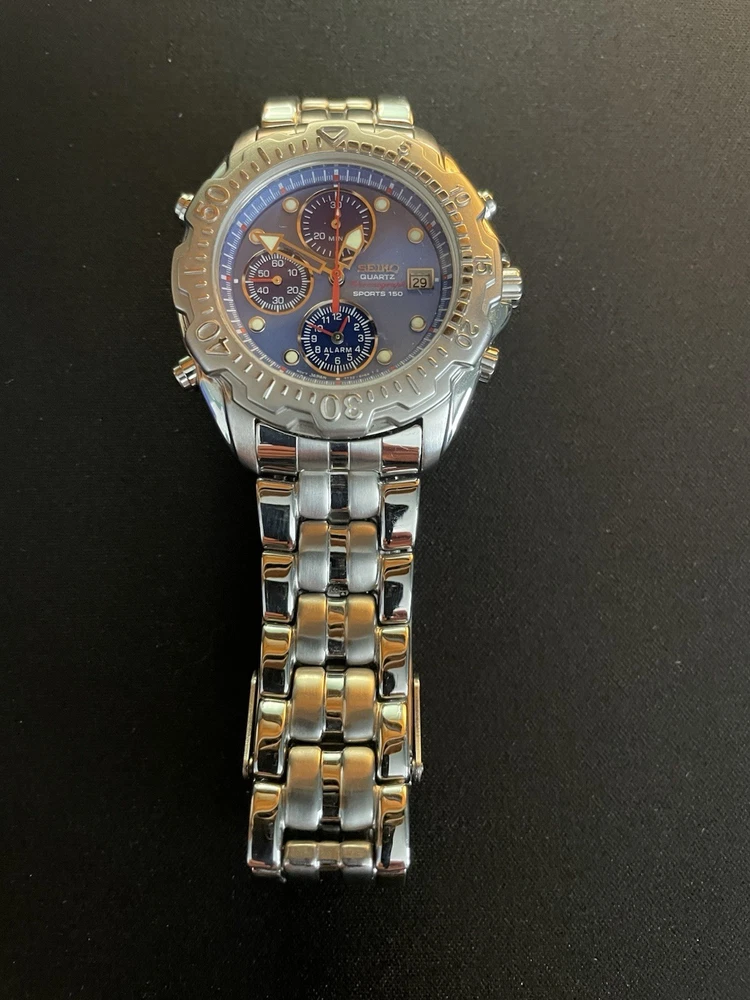 Seiko Sports 150 SDW657, 7t32 movement. Some scuffs on the bracelet & scratches on the case back. New battery. Original owner.