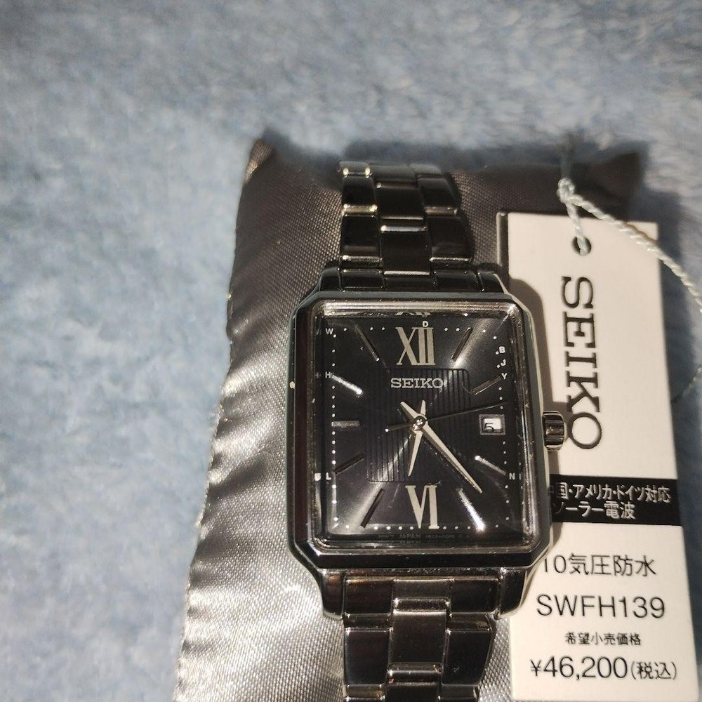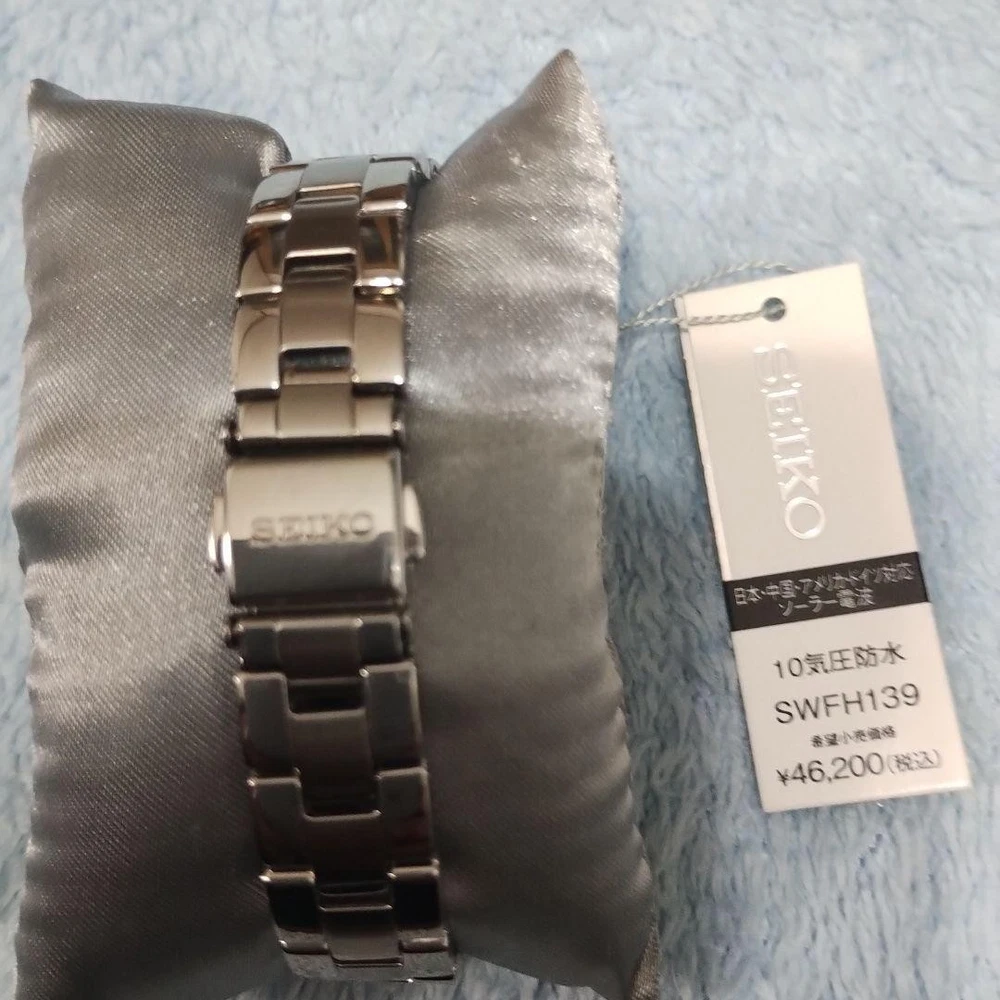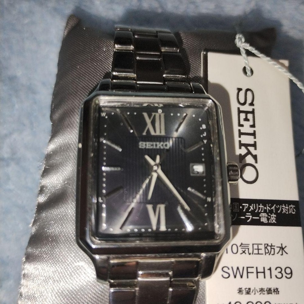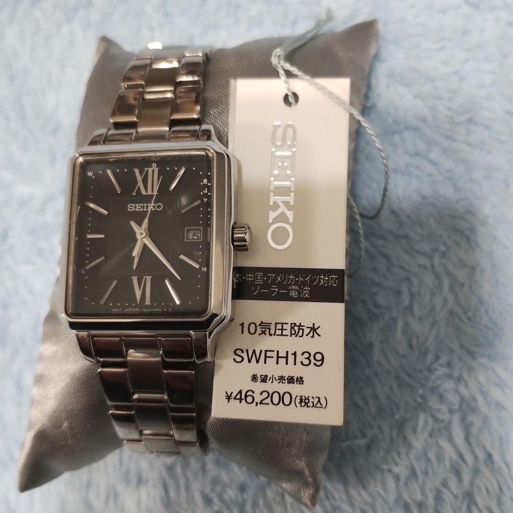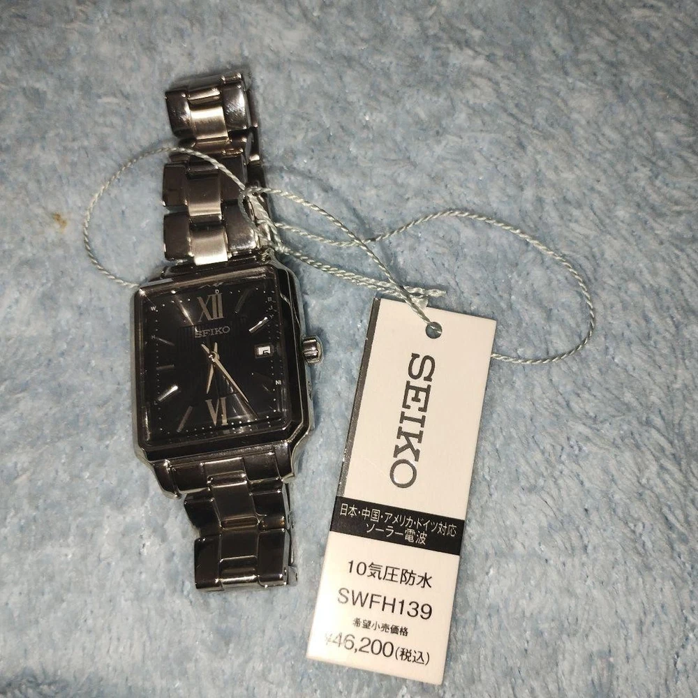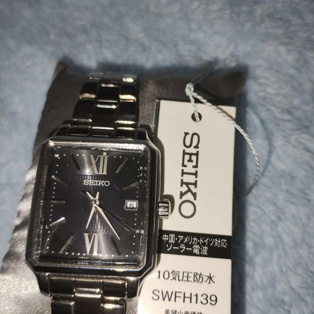 Seiko Women's SWFH139 Solar Radio Watch Silver Rectangular Dial New Unused Key Features ## Product Overview This is a brand-new, unused Seiko Women's SWFH139 Solar Radio Watch featuring a sleek silver rectangular dial. It combines elegant design with advanced technology, making it a reliable and stylish accessory for any occasion. ## Key Features and Benefits - Authentic Seiko model with cutting-edge solar-powered and radio-controlled movement - Elegant rectangular dial with a vintage-inspired Art Deco design - Durable stainless steel case and band with water resistance up to 10 ATM - Precise timekeeping with automatic radio signal reception and time adjustment - Unused condition with original tags and protective seals intact ## Technical Specifications and Details - **Brand:** Seiko - **Model:** SWFH139 - **Movement:** Solar Radio-controlled (Caliber 1B22) - **Case Material:** Silver stainless steel - **Case Size:** 35mm (height) x 25mm (width) - **Dial:** Rectangular, silver with guilloché engraving (vertical stripes), Roman numeral and bar indices, silver hands - **Band:** Silver stainless steel bracelet with push-button fold clasp - **Water Resistance:** 10 ATM (suitable for swimming and water-related activities) - **Additional Features:** Automatic radio signal reception, time zone adjustment, system reset, and manual reception - **Battery:** Solar-powered (recharged via exposure to light) - **Additional:** Comes with protective seals and original tags ## Product Condition This watch is brand new and unused, with no signs of wear or damage. It includes original tags and protective seals, ensuring pristine condition for collectors and enthusiasts. ## Main Selling Points - Authentic Seiko solar radio-controlled watch with advanced timekeeping technology - Elegant, vintage-inspired rectangular design suitable for formal and business wear - High durability with water resistance and corrosion-resistant stainless steel - Perfect for collectors seeking a reliable, high-quality timepiece - Ready to wear with all features fully operational and system tested ## Additional Information This model is highly regarded for its combination of classic aesthetics and modern technology, making it a valuable addition to any watch collection. The watch is shipped promptly and securely, with a guarantee of full functionality and authenticity. Specifications Brand SEIKO Country Japan Product Description eBay Item Description current! Unused! Seiko SEIKO Selection S Series SWFH139 Shipping Using standard shipping (Japan Post, FedEx or DHL), an estimated delivery date will be around 5-14 days after shipment. We send it with your tracking number, so that you can track the delivery status anytime. Shipping is only available to addresses registered on eBay. If you would like to send an item to a different address, please update your shipping address on eBay before you complete your purchase. Company Profile Our store is located in Japan. We will help you to find what you are looking for by searching all over Japan. We know where to look for and provide this service for free, so please feel free to contact us. Payment eBay's recommended payment methods are available. You will be able to pay with credit card, debit card, Apple Pay, Google Pay, or PayPal. International Buyers - Please Note: Import duties, taxes, and charges aren't included in the item price or shipping charges. These charges are the buyer's responsibility. Please check with your country's customs office to determine what these additional costs will be prior to bidding or buying. For US buyers: Items are shipped via DDP (Delivered Duty Paid), so you will not be charged any customs duties.