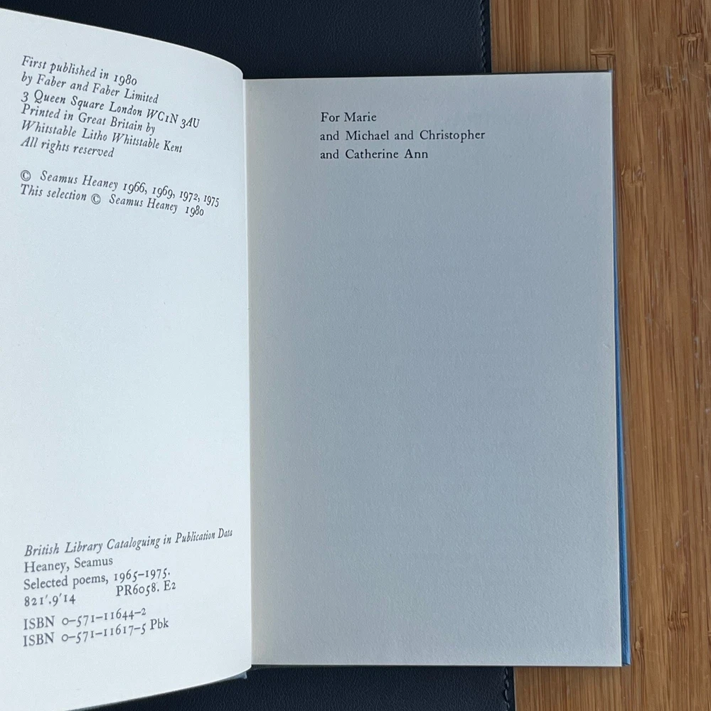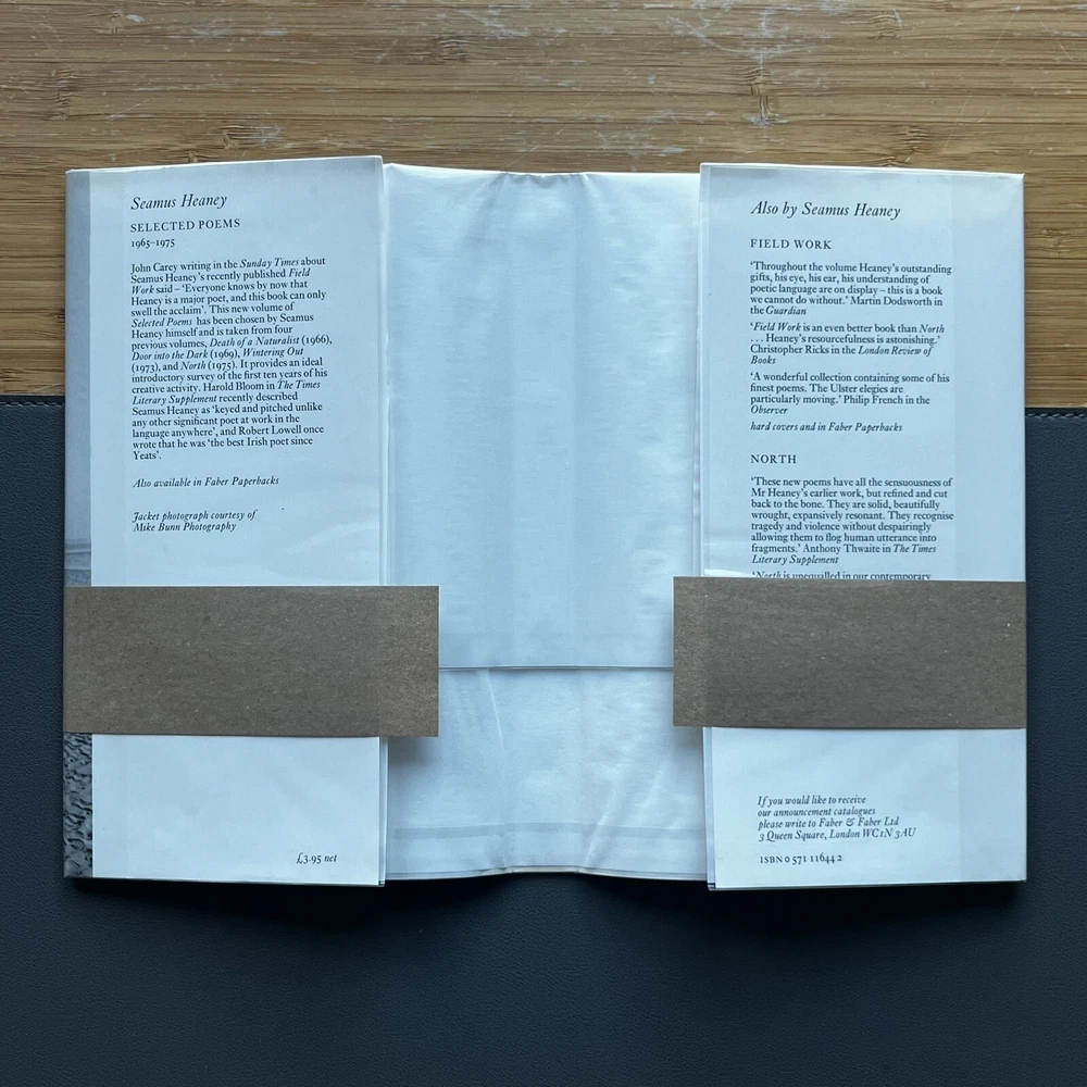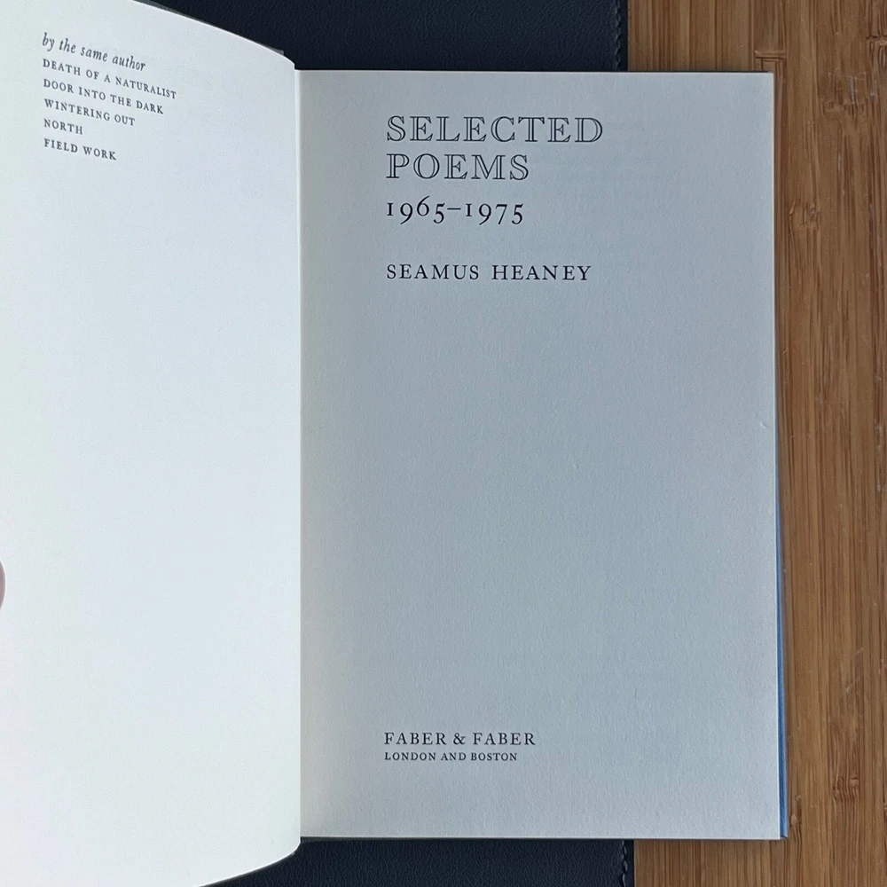 Title | Selected Poems 1965-1975 Author | Seamus Heaney Publisher | Faber & Faber Year | 1980 Country | United Kingdom Edition | First Edition/First Impression (UK) Binding | Hardback Attributes | First Edition, Dust Jacket, Signed. Hardback Condition | Very Good Dust Jacket Condition | Very Good | BOOK CONDITION | The original dust jacket is clean with minor wear along top and tail of dust jacket. It has not been price clipped and displays the original price tag ‘£3.95 net’. Signed to front free endpaper by Seamus Heaney in Cló Gaelic script stating ’Séamus Ó h-łunuis, Cheltenham, 1988’. The exterior boards are clean with minor wear along top and tail of spine. Spine is straight and is tightly bound. The interior papered boards are clean. All pages are clean and tightly bound. No spillage, marking or underlining within text. Outer edges of text block are clean. Blue covered hard boards with gold lettering. Please make reference to attached images on listing. Overall the book is in very good condition and would make a great addition to a Seamus Heaney collection. | SELECTED POEMS 1965-1975 STORYLINE | This volume gathers nearly all of the poems from Heaney's first four Death of a Naturalist (1966), Door into the Dark (1969), Wintering Out (1972), and North (1975). | SELLERS INFORMATION | All books will be securely packaged and shipped with care. Purchases over £100 will be sent via tracked delivery and purchases over £500 will require a signature upon delivery. Postage can be shared between multiple items, so please take a look at the other items for sale. Our packaging, with the exception of our sticker, is 100% compostable and biodegradable. Our book wrap is a safe, environmentally friendly cardboard that is Forest Stewardship Council certified. Our paper bubble wrap is an eco friendly alternative and is made from recycled paper. Any questions or queries please do not hesitate to get in contact. Kind regards, Endpaper Books 📚 Instagram | endpaper_books Facebook | Endpaper Books