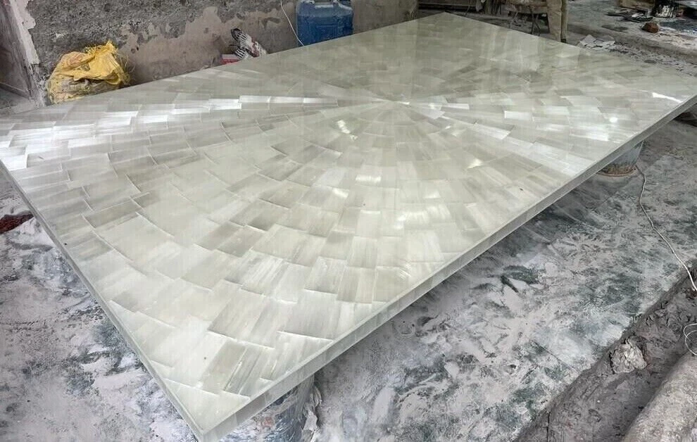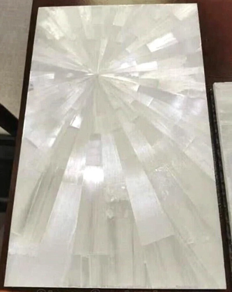 This stunning selenite slab adds elegance to any space! The polished finish and natural crystal glow make it perfect for tabletops, flooring, or wall decor. Light reflects beautifully, creating a luxurious ambiance. Great for homes, hotels, or offices—durable yet gorgeous. Custom options available too!