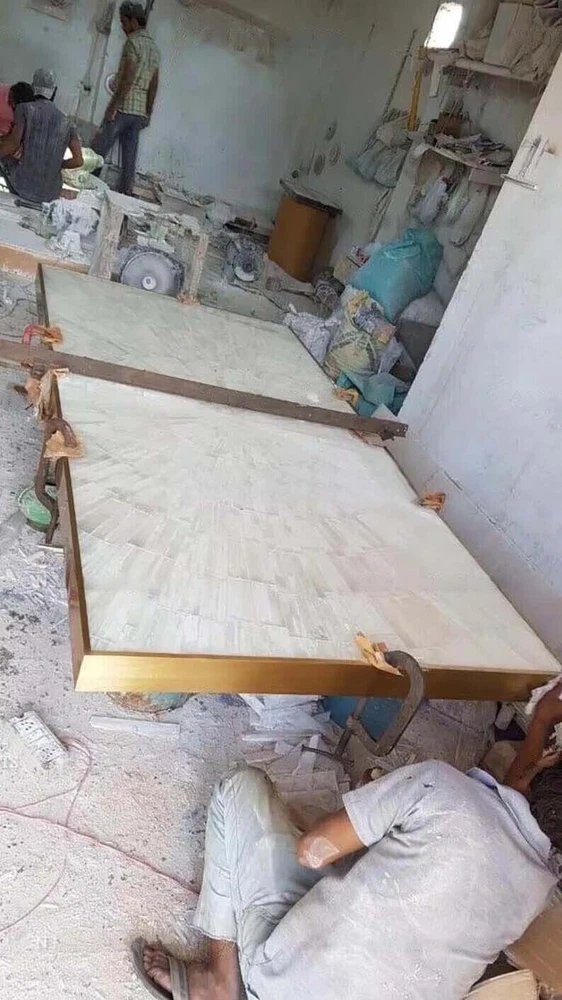 Welcome To Unique-Handicrafts Shop Description Very unique Art by Indian Artist ,Coffee/Side Table top Used Material: Marble & Multi Semi Precious Gemstones Inlaid Size: 48"x24" inch Color: White Shape: Rectangle Pattern: Handmade Room: Bedroom, Dining Room, Hallway, Home Office/Study, Kid’s Bedroom, Kitchen, Laundry/Utility Room, Living Room,Patio, Playroom Packaging: Wood & Foam Export Packing Shipping: Air Can be customize ,Please message your desired size Process of Making Marble Inlay 1. We are inlaying semiprecious stones in three different colors of marble White Marble,Black Marble & green marble. 2. The Marble used to inlay the semiprecious stone comes from city of Makrana, Rajasthan India. 3. First we cut the marble in different shape example Round,Octagonal,rectangle,oval & square shape. 4. After cutting the marble we paint the surface of marble with Hina(red Color) so we can sketch the geometry on the surface of Marble. 5. With the Help Of emery wheel we cut,polish & shape the semiprecious in different forms of flowers,buds,leafs & stems all the cutting of the semiprecious stones are manually cut by the artisans. 6. After cutting the semiprecious stones we assemble them to complete the motif & then the semiprecious stones are placed on the surface of marble so we can trace them on the surface of marble to make the exact size of the cavities once the stones are traced we remove the stones from the surface of marble & then manually we chisels the marble with the diamond chisels & tungsten carbide chisels once the cavities are completed we place the semiprecious stone in the cavities to check the depth of the stones. 7. When we are fully sure that the stone fits well in the cavities we use special kind glue to fix the semiprecious stones into the marble. 8. After completing the inlays into the marble we first rub the surface of marble with sandstone & then we polish the surface of marble with sandpaper which brings the natural shine on the surface of marble & to the semiprecious stone & we use wax polish to make the surface shiny. 9. Most interesting expect of this pietre dure( marble inlay with hard stone) all the designs are made by the artisans are purely an imagination of artist once made they cannot make another one exactly the same it will look similar but will not be the same. 10. This beautiful art is a dying art of Agra,India the artisans those make this beautiful art are the descendants of those families who built the Tajmahal in 17 century Tajmahal is a monument of love & you can easily see the artwork done with the same technique on the walls of the Tajmahal. 11. I Invite you to come to Agra,India & visit the beautiful Tajmahal & you will surely be impressed & we request you give us a chance to show you the true handmade art of Agra by our artisans. 12. When you are purchasing this beautiful handmade Marble inlay art you will always be happy because all the pcs made by our artisans with love,hope & happiness. 13. You will always be enjoying the beautiful handmade marble inlay artwork secondly you will be supporting the local artisans of Agra,India to keep this beautiful dying art Alive. 14. All the purchase benefits the artisans & the buyer as there is no middle men in selling & buying. Inspiration/Story Behind This Product 1. This beautiful inlay art is a dying art of Agra,India the artisans those make this beautiful art are the descendants of those families who built the Tajmahal in 17 century Tajmahal is a monument of love & and one of the seven wonders in the world you can easily see the artwork done with the same technique on the walls of the Tajmahal. Note 1.The marble inlay table is made in Agra, India. 2.The marble inlay table will be delivered by FedEx or DHL free of cost door to door. 3.If there is any local tax,custom duties or Vat will be paid by the buyer at the destination. 4.The parcel is dispatch with proper packing & fully insured covering all kind of risk. 5.This marble table illuminates if the light arrangement is made under the plate. 6.It is an art piece which will be a beauty & the conversation pieces at home. 7.If You Are Looking Something Customize, Let Us Know We Will Make For You As Per Your Design, Size & Shape. 8. This is only Table Top & Base/Leg is not included. If you want stand/leg also, please contact us For Wholesale or corporate Inquiry please contact us. Thank you very much for admiring beautiful handmade marble inlay art. Please recommend your friends & family members to visit our ebay store this art is Dying art of Agra & we need your participation to keep this dying art alive. Thanking you in anticipation for your great support. If you are in Agra please email us we love to show you the process of marble inlay work at our premises