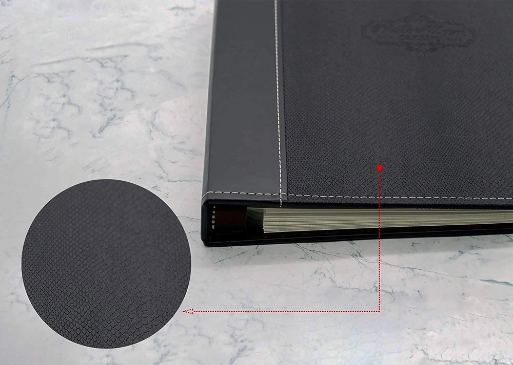Suitable for 3x5,4x6,5x7,6x8,8x10 Photos and any tickets you want to keep. The album size is 11.4(L) x 10.6(W) inches, 20 sheets/40 pages. Could hold about 120 photos. Faux Leather cover looks beautiful and upscale. Keep your photos acid free, air free and dustproof. This scrapbook album is a great gift for wedding, baby shower,graduation, Christmas, Mother's Day, etc.