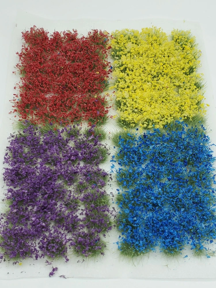 Self adhesive static grass tuft box for Miniature scenery or Terrain -Mix Wildflowers- Length 4 mm . Tufts are on a forest green base, with 2 colors of very fine 'flowers' sprinkled on top. These flowers come in: Lavender, Red, Yellow, Blue. Please check out our store to find the other colors and styles of tufts! Easy to remove from sticker and flexible to apply to cracks and uneven spots. Each box contains approx 120 tufts with various shapes and sizes to mix and match for a more natural look. The bigger tufts can be easily cut or ripped apart to desired shape. Grass made from a combination of lengths with highest being 4 mm for a more 'full' or fluffy look. Please feel free to mix and match Tufts colors and sizes from all our other auctions for a rebate up to 25%. The discount will be applied automatically in your shopping cart! Terrain and base in pictures for display purpose only. If you have questions please message us for more info. Thanks for taking a look!:D *We pack and ship all our orders daily, @ 11:30AM Eastern time Monday-Friday . Sunday is gaming day so we too get to enjoy the Hobby! *Please note that our products are for ages 13+ and are not meant for consumption. *Due to the nature of some displays the actual colors may slightly vary from the pictures above. We put effort to make them appear as close as possible under regular tabletop lighting conditions indoors.