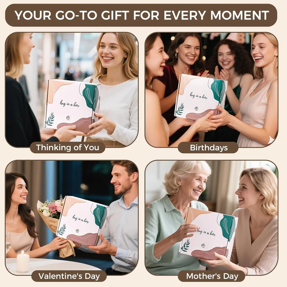 Self Care Gift Basket for Women Birthday Relaxing Spa Set Gifts Emerald green LuxeFusion Product Description Features Thoughtfully Curated Gift Box –All-in-One Surprise for Every Woman: Don't worry about choosing a gift anymore, because we've got the perfect choice for you; Carefully designed and curated with comfort and wellness at its core, this luxurious spa gift box is a beautiful gift box of 10 carefully selected practical items for women of all types; Whether it's for a female best friend, mom, sister, daughter, grandma, wife, girlfriend, colleague or teacher, this gift-ready set will convey love and appreciation in an elegant package 10-Piece Get Well Gift for Women: Comforting birthday gifts for women, gifts for mom Birthday Gifts for Mom contains all carefully-designed thoughtful goodies, including luxurious soft blanket, 12oz thermos mug, Lavender scented candle, handmade oatmeal soap, Himalayan bath salts, silk eye mask and headband, coral fleece socks, dried flower gift card and beautiful gift box; Perfect for relaxing at home, unwinding after get off work, traveling, or adding a special touch to your daily life Motivational Mug - A Warm Companion for Any Drink: This 12oz mug with handle features double-wall vacuum insulation that keeps drinks cold for 9 hours and hot for 3 hours, making it perfect for iced coffee, tea, wine, juice, champagne, and more; The warm blessing of "HUG in a MUG" brings warmth and care with every sip, making the heart feel the warmth of love; Whether at home or in the office, this is a thoughtful little item she'll use over and over again Make comfort easier: Made from 100% microfiber polyester, this healing knit blanket from our inspirational gifts, self-care gifts, condolence gifts, recovery gifts, cancer care packages is soft, cozy, and fluffy for her to completely relax and unwind; A silk blackout eye mask ensures deep sleep, and paired with a pair of coral plush socks, it brings the ultimate warmth and comfort; Let her enjoy a moment of peace and feel cared for and understood with this post-surgery gift NOURISHING SPA GIFT BASKET: Made with premium soy wax, the vanilla coconut scented candles in our soothing spa gift basket, self-care gift, bath gift set burn evenly for up to 20 hours with smokeless burning; Paired with a Himalayan bath salt and a bar of oatmeal coconut handmade soap, perfect for gentle cleansing or bathing; Together, they create a tranquil spa atmosphere for her to relax after a busy day - because she deserves time to recharge and feel loved Share your thoughts and blessings: Each gift box is beautifully packaged, and it is a gift when you receive it; It also includes a high-end dried flower greeting card, where you can write your personal blessings or leave a message; Whether you want to express gratitude, love or encouragement, your words can make this gift more meaningful Product Details Package Dimensions : 12.71 x 11.34 x 5.28 inches; 3.81 Pounds Manufacturer : APRBOX Item Form: Box Brand: APRBOX Skin Type: All Item Weight: 1.73 Kilograms Use for: Whole Body Free Shipping All orders ship free and fast to your doorstep. Easy Returns Satisfaction guaranteed. 30-day returns, no questions asked. 24/7 Support Contact us anytime; we’re here to help, day or night. Brought to you by LuxeFusion – Quality you can trust.