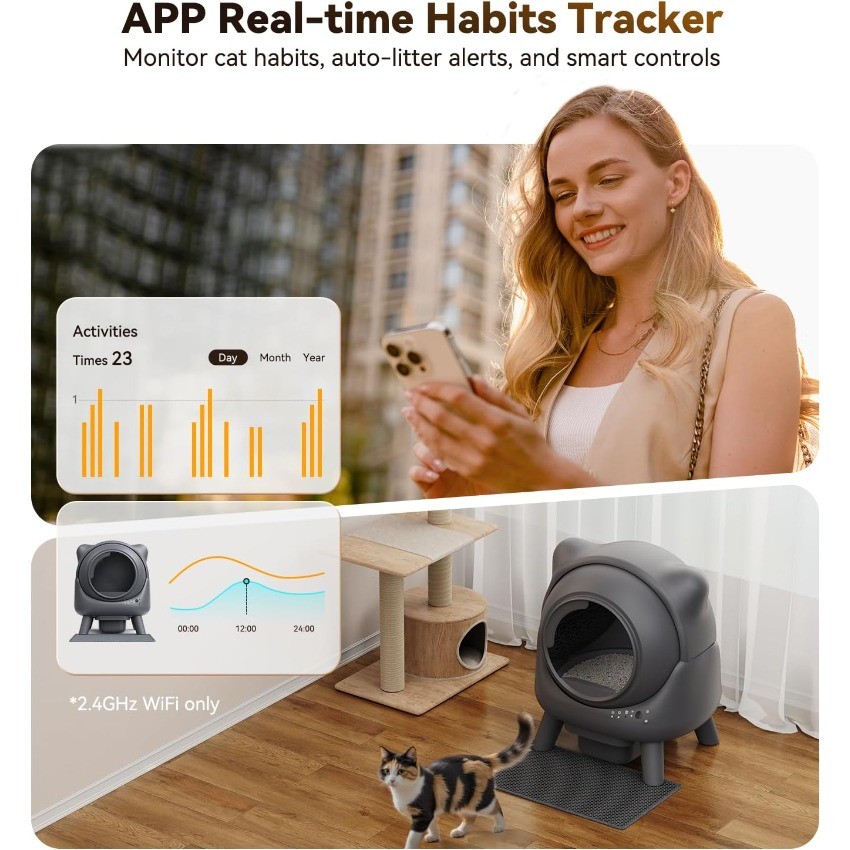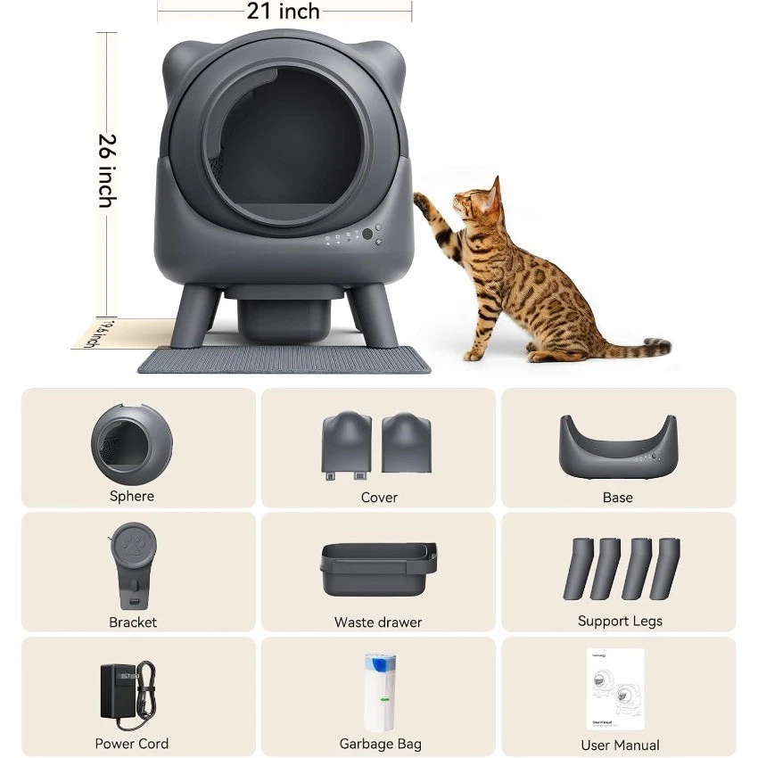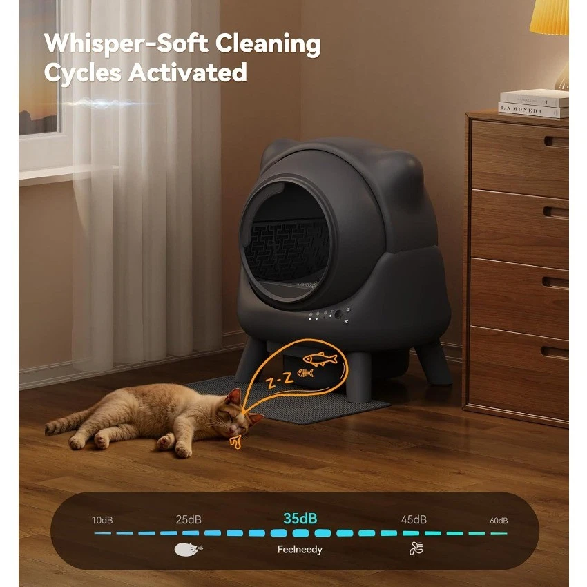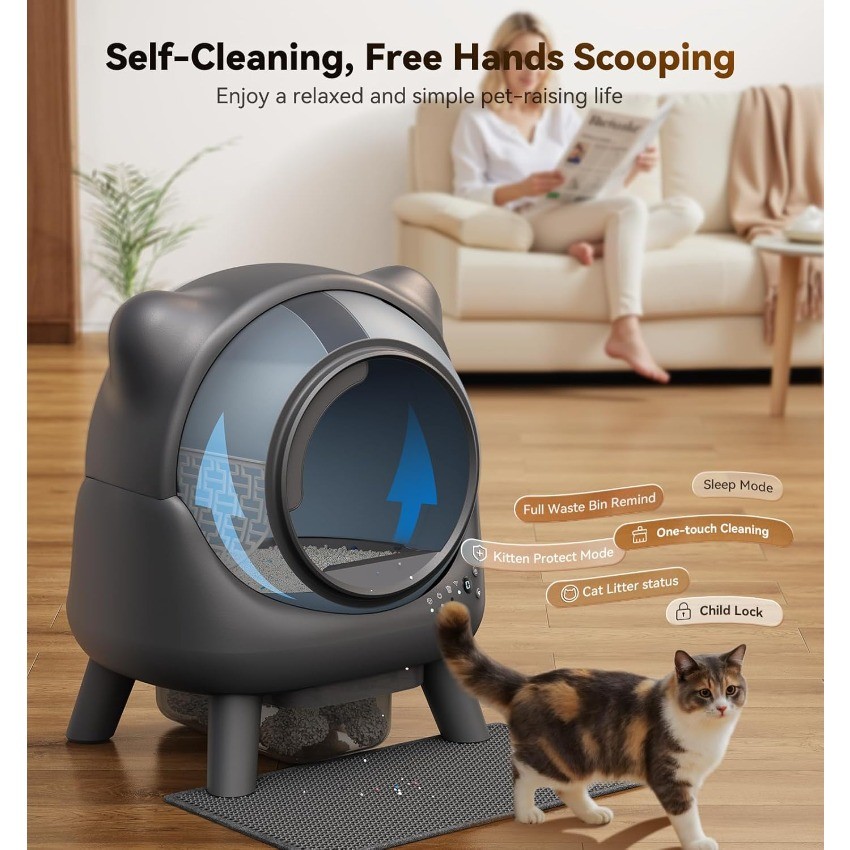 Self Cleaning Litter Box, Automatic Litter Box, FEELNEEDY Odor Control Robot, Cat Ears Design, 65L APP Real-Time Monitor, Cat Litter-Boxs for Multiple Cats, Safety Sensors, with 1 Trash Bag About this item Self-Cleaning & Zero Scooping: Say goodbye to daily scooping! Our self-cleaning litter box activates within 2 minutes after your cat exits, separates waste, and deposits it into a trash bin. Compatible with clumping litter, silica crystal litter, and tofu litter. Enjoy a fresh home and zero scooping even with 15 days of extended use since ample 11L trash bin Advanced No Smell System: Our self cleaning litter box adopts a triple-layer defense system to keep your home consistently fresh. First, the integrated ABS material prevents urine leaks and traps odors at the source. At the same time, the 3-layer waterproof cat litter mat (non-stick design) outperforms standard silicone mats by resisting waste buildup and odor absorption. Finally, the airtight waste storage (with silicone gasket) ensures smells stay sealed in—0 escapes. Enjoy real odor-free living Multi-Layer Safety Protection: Engineered for modern pet parents. We have designed an infrared sensor at the trash bin port. If your cat probes into the trash bin port out of curiosity during the cleaning cycle, the ball cabin will immediately stop rotating and return to the maximum opening state to prevent the cat from being trapped. If your cat enters the litter box, it instantly pauses cleaning because it senses the weight Real-Time Tracking with APP Control: This self cleaning litter box lets you track your cat's bathroom habits and litter use through the app. One-click cleaning can be performed through the APP. The built-in health monitor watches how often and when your cats go. This cat litter box supports 2.4G WiFi. When the trash can is full, the APP will remind you to change the trash bag in time Hassle-Free Setup & Easy Refill Litter: Pre-assembled design – Unbox, plug in, and pour litter (no tools required). To pour out the used cat litter, you need to tilt the litter box forward and pour the litter into the trash bin. Saves 80% of setup time. Lift the cat ears, the top-fill system lets you refill new litter via the wide opening 1---Please feel free to contact us through eBay Message ifrou have question,such as tracking number,shipping statusct.. 2---Please DON'T GIVE NEGARTIVE or NEUTRAL REVIEW or OPEN ANY CASES before contact us through ebay inbox. 3---Sometimes we may send small gift for you,please keep it if you get some gift from us.And hope you like it. 4---To offer best service,sometimes we will update the status of your order,please check your ebay inbox time by time. Anyway,thanks so much,enjoy shopping.