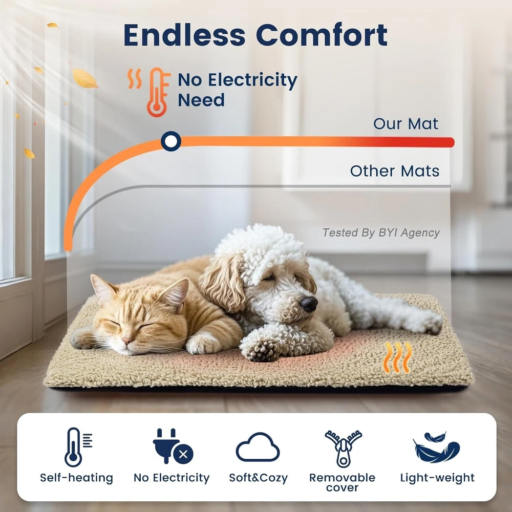 Created with Eselt - eBay Listing Designs Send us a message Created with Eselt - eBay Listing Designs Our Store Seller Profile Feedback About us Contact Created with Eselt - eBay Listing Designs Self Heating Dog Mat, 36 X 24 Inch Self Warming Dog Bed for Indoor Outdoor, Non About this item MULTIPLE SIZES: We offer five size options - 24*18*1, 30*20*1, 36*24*1, 42*28*1, and 48*28*1. Suitable for pets weighing from 30 to 110 pounds. There is a perfect fit for every furry friend, whether it's a small kitten or a large puppy. SELF HEATING: No electricity needed! Our self heating dog bed works by absorbing and reflecting your pet's body heat, creating a warm and cozy haven. This natural heating process keeps your furry companion snug and comfortable even on the coldest days. DESIGNED FOR DURABILITY: Made with high-quality & comfortable sherpa material and equipped with a non-slip bottom. Built to last, our pet warming mat can endure the wear and tear of daily use. Non-slip for safety for your furry friend. MULTI USE & PORTABLE: Comes with a removable washable cover for effortless cleaning. The lightweight design makes it easy to move around. Whether it can be uesd as a pet crate heating pad, kennel warming mat in the room, or even outdoors on a sunny day. AFTER SALES SERVICE: If not satisfied with the self heated pet pad, contact us. We'll solve issues. Shake and pat after receiving from sealed package. Cover is machine washable. Wash cover before use for comfort. Committed to your satisfaction. Created with Eselt - eBay Listing Designs Created with Eselt - eBay Listing Designs