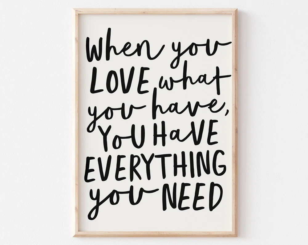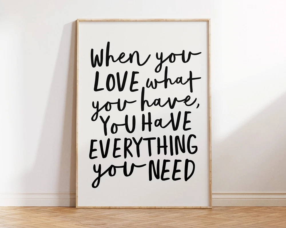 Self Love Motivational Poster Quote Wall Art Printable Motivation Quotes Prints When You Love What You Have Material: Premium luster photo paper Print type: Inkjet printing One side printed + The finish provides the highest possible resolution and color saturation + Lasts up to 200 years in color and 400 years in black-and-white + Printed on high-quality resin-coated photo base paper medium + Posters can be hung with double-sided tape, tacks, or framed + Hand washing with a gentle cry cloth is recommended for extended durability I will hand select the best choice of paper for your chosen design to ensure top quality results for a beautiful, bright and luxurious print. All prints are sealed in cellophane slips for protection during transportation, and are shipped in a protective cardboard envelope.