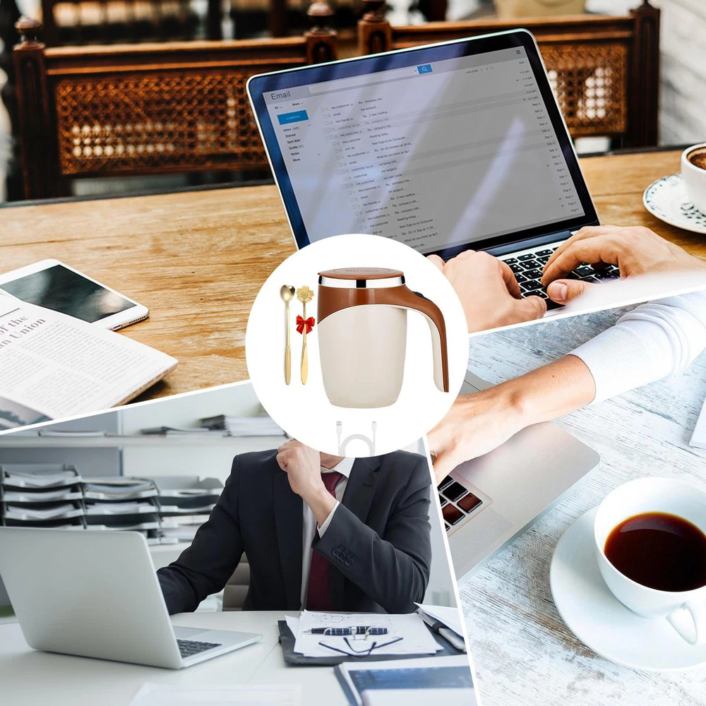Self Stirring Mug Auto Magnetic Operated Mixing Tea Coffee Cup+Spoon Rechargeale