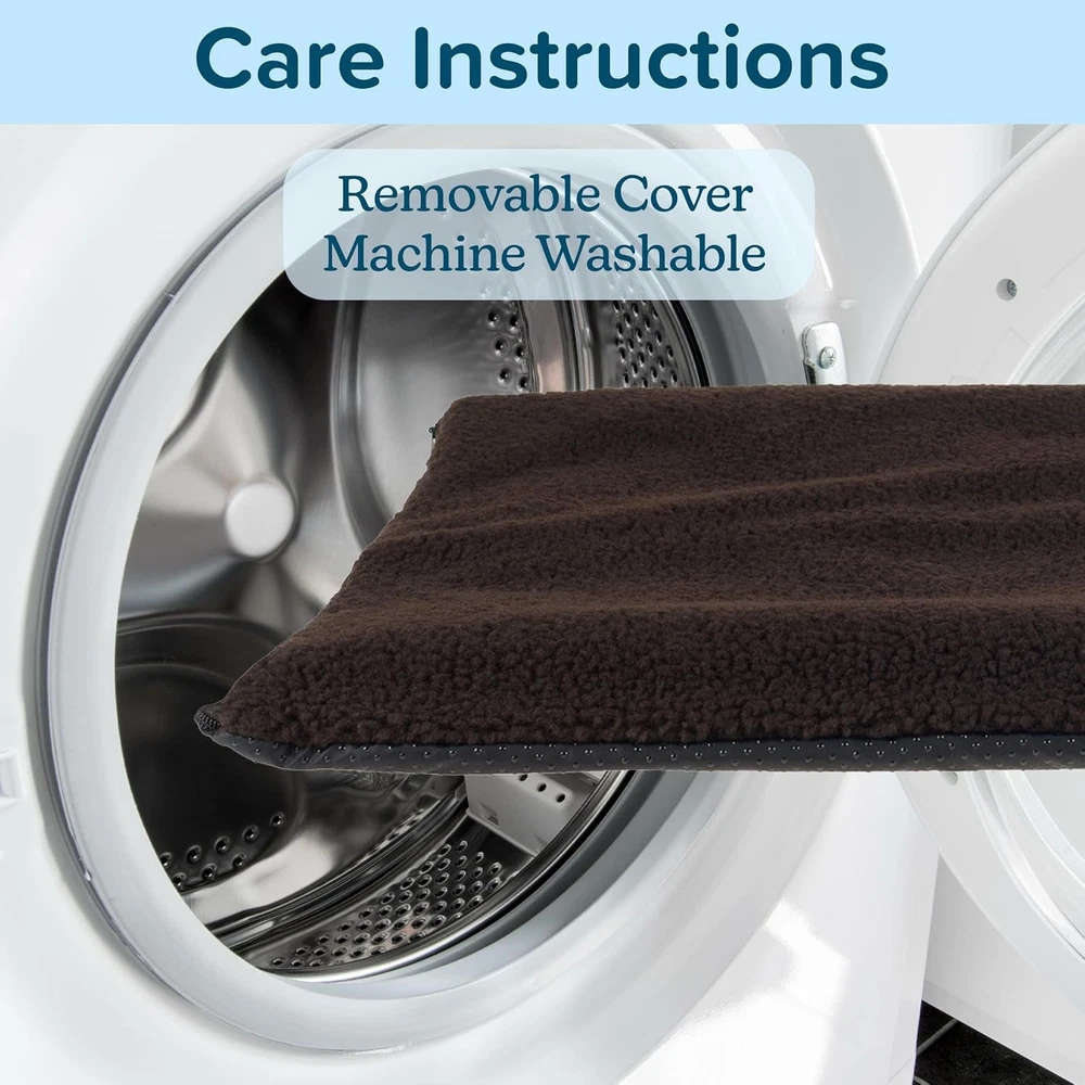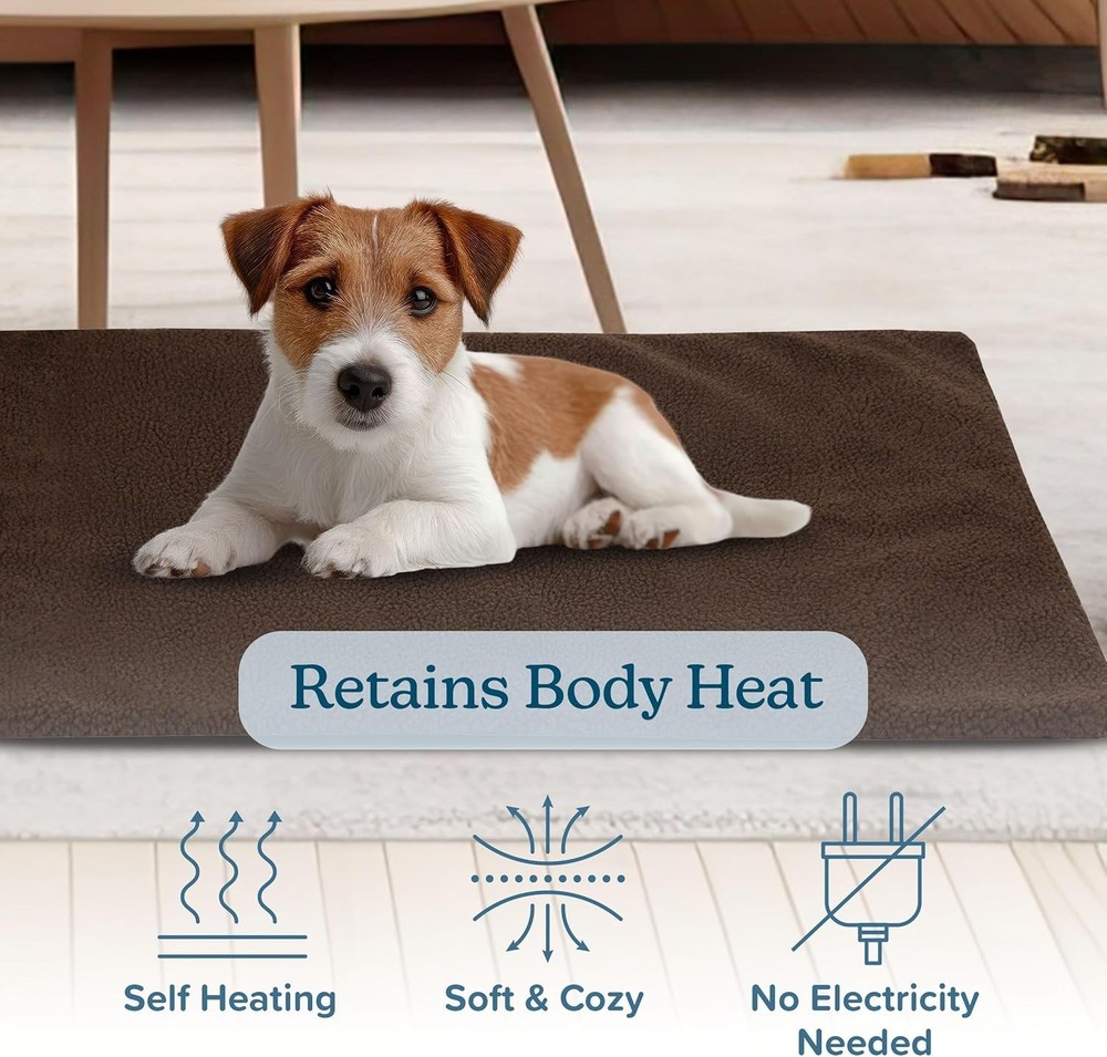 Self Warming Cat Mat - 36x24in Thermal Dog Crate Pad with Removable Washable Sherpa Cover and Reflective Insulation Layer for Self Heating - Pet Supplies for Medium Dogs and Cats by Brown SELF HEATING CAT PAD - This self warming dog mat features a thermal insulation layer inside that reflects your pet’s body heat back to them. The crate pad uses self-heating technology to provide natural warmth without the need for plugs or electricity. MULTI-USE - This lightweight pet mat can be used by medium dogs, cats, and pets up to 45lbs. Use it as a dog mat for crate, fill it with a blanket for additional padding (sold separately), or place it on top of an existing cat bed for a cozy resting area. WARM AND FUZZY - The self-generating heated dog mat has a 100% polyester Sherpa cover for optimal coziness for your furry pal to snuggle up with. The material on the dog kennel pad provides the softness and warmth your pet will enjoy all round. EASY CARE - The removable zippered cover on the cat warming pad or kennel mat is machine washable for convenient and easy cleaning, so your pet can enjoy long-lasting comfort. Note, remove the thermal insert from the dog cage mat before washing. PRODUCT DETAILS - Materials: Polyester. Dimensions: (L) 36" x (W) 24" x (H) ". Care Instructions: Wash Cover on Warm; Remove the Thermal Insert Before Washing; Do Not Tumble Dry. Stuff with Blankets or Pillows for Padding (Not Included). Color: Brown. The Heated Cat Bed is perfect for dogs, cats, and any other four-legged friends who need a little extra warmth. The warm and fuzzy polyester Sherpa cover is removable and keeps your pet comfortable while the insulation of the heated pet bed radiates their heat back to them. Perfect for lining crates and kennels, or simply laying on the couch, floor, or to create a warm dog bed, this self-warming dog bed eliminates the need for electric pet products, putting pet owners at ease. IMPORTANT: is committed to providing the consumer with the absolute best price and value on all of our products. NOTE: This is an exclusive product of and ONLY Cat Beds for Indoor Cats by are SATISFACTION GUARANTEED to be genuine. Avoid buying counterfeit products and transacting with unauthorized sellers. is a registered trademark protected by Trademark law and will be vigorously defended.
