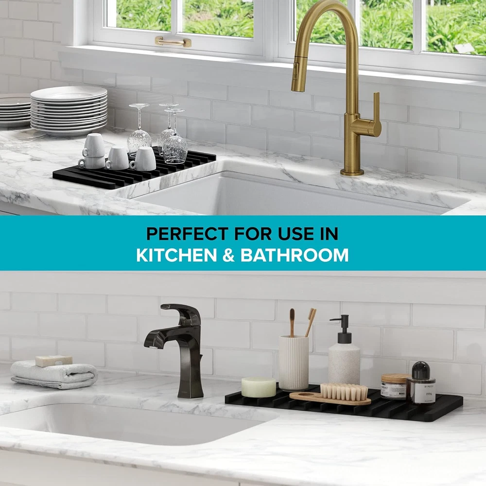 Store New Arrivals Add to Favorite View Feedback Contact Self-Draining Silicone Dish Drying Mat or Trivet for Kitchen Counter in Dark Grey, KDM-10DG Description Item model number KDM-10DG Style Drying Mat Pattern Solid Country of Origin China Warranty Description 1 year limited warranty. Unit Count 1.0 Count Batteries Required? No Finish Dark Grey Product Dimensions 8.13"L x 14.75"W Material Silicone Item Package Quantity 1 Item Weight 12.16 ounces Special Features Flexible,Waterproof Part Number KDM-10DG Mounting Type Kitchen Counter,Sink,Countertop,Surface Color Dark Gray Shape Rectangular Included Components Drying Mat Product Care Instructions Hand Wash Only Size 8.1" x 14.8" SILICONE DRYING MAT with soft surface for drying pots, dishes, glassware, and utensils keeps your countertops clean and dry – DIMENSIONS: 14 3/4 in. L x 8 1/8 in. W x 1/2 in. H – MULTI-FUNCTIONAL: Use as a TRIVET for hot pots and pans straight out of the oven – Use in the BATHROOM for cosmetics or styling tools to protect vanity countertops SELF-DRAINING DESIGN: Sloped drainage grooves channel water into the sink, protecting your countertop from water damage – FASTER DRYING: Raised silicone ridges increase air circulation so that wet items dry faster 100% FOOD-GRADE SILICONE is great for drying produce – NON-SLIP DESIGN keeps the mat from sliding around and items from slipping out of place – DURABLE CONSTRUCTION: High-quality silicone easily stands up to everyday use, flexible enough to bend and twist without breaking HEAT SAFE UP TO 400F: Perfect for use as a trivet or coaster, or as a cooling rack for baked goods – DISHWASHER-SAFE: Waterproof construction allows you to wipe away spills or throw the mat into the dishwasher for easy cleaning – STAIN-RESISTANT color-stable material will not fade over time – PAIRS WITH a matching Kraus ROLL-UP DISH DRYING RACK (KRM-10 and KRM-11) for enhanced functionality in your kitchen COMPACT DESIGN perfect for small kitchens or prep areas with less counter space, fits in any drawer or cabinet for convenient storage – MULTIPLE COLORS compliment your kitchen or bathroom sink – 1 YEAR LIMITED WARRANTY with top-rated customer service available to support your needs Protect your kitchen counters while drying your dishes with the KRAUS Self-Draining Silicone Dish Drying Mat. The smart design incorporates sloped drainage grooves that channel water directly into the sink, protecting your kitchen counters from water damage. Raised silicone ridges increase air circulation, allowing wet items to dry more quickly. Made with durable BPA-free silicone, this 100 percent food-safe mat is flexible enough to bend without breaking and easily stands up to everyday use. A non-slip design keeps it from sliding on the counter and prevents items from slipping, with an optimized angle engineered to prevent fragile stemware from tipping over. Heat-resistant up to 400 degrees Fahrenheit for use as a trivet or coaster to protect your countertops from hot items, or as a cooling rack for baked goods straight out of the oven. Use this multi-functional accessory in the kitchen to air-dry pots, pans, and cutlery, or in the bathroom to protect your vanity countertops from cosmetics and hot hair styling tools. Waterproof construction allows you to simply wipe spills from the mat’s surface, or throw it into the dishwasher for easy cleaning. The color-stable stain-resistant material will not fade over time, with multiple color options available to complement your kitchen or bathroom sink. Perfect for smaller kitchens or prep areas with limited counter space, the compact design fits into any drawer or cabinet for convenient storage. ABOUT US We offer the best prices around on high quality products. Our E-store includes media such as books, movies, music and games while offering electronics, toys, sporting apparel, clothing, tools, general home, garden items and more. SHIPPING We are always working hard to ensure your package arrives as soon as possible. Please understand that some factors like weather, high postal traffic, and the performance of shipping companies are outside of our control. We offer free shipping to the lower 48 states and ship within 2 business days of payment, usually sooner. We do not accept P.O. Boxes. Please provide a physical address. For shipping outside of the continental USA, we only use eBay's Global Shipping Program.The item is shipped to KY and then sent to the rest of the world. International customers are responsible for all duties and taxes. Continue to check out in order to calculate costs for shipping the item to your country. Messages regarding eBay's Global Shipping Program MUST be directed at eBay EXCLUSIVELY. RETURNS We offer a 30-Day Return Policy on items which you are not completely satisfied with. You have the option for a full-refund or an exchange of the item. No returns are available on items shipped outside of the USA. PAYMENT We accept PayPal. CONTACT US This page content is yet to come Please ad us to your favorite seller and visit again later Thank You CUSTOMER SATISFACTION We try our very best to make sure every customer is completely satisfied. If there's a problem, message us! We're happy to help. WE ACCEPT Copyright © 2021 AutoDS. | All Rights Reserved