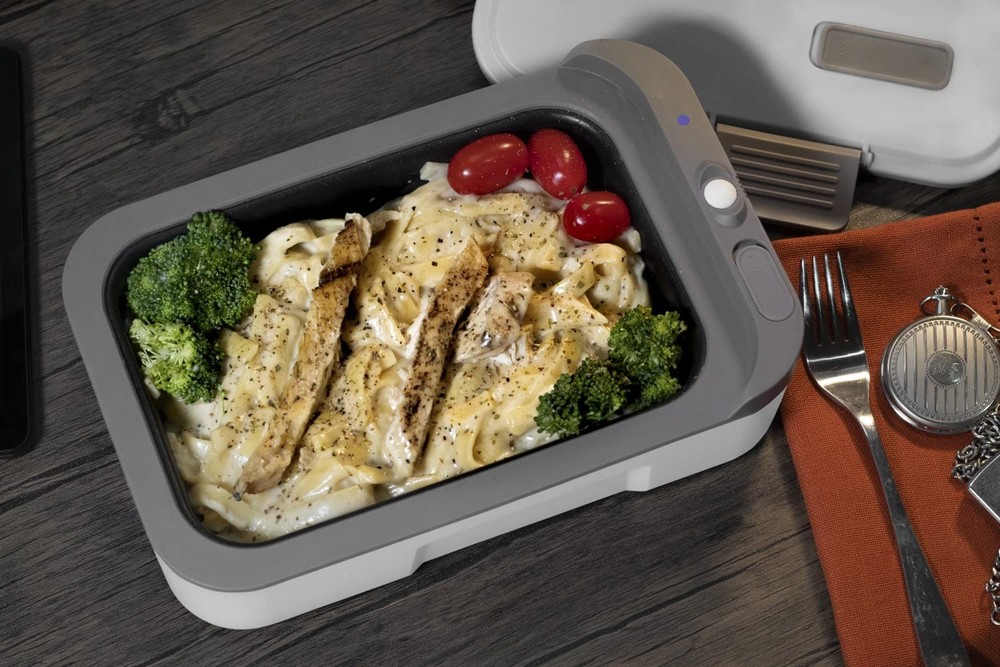 Enjoy the Warmth of a Home-Cooked Meal Anywhere. Take to work, outdoor recreation or travel and enjoy a delicious, heated meal on-the-go. applies recent developments in battery technology to improve the efficiency and speed of meal prep. Our proprietary lithium battery pack is rechargeable, safe and offers unparalleled on-demand convenience. Charge after each use (light on wall charger turns from red to green when fully charged). Do not immerse in water or liquids (not water proof). Wipe nonstick surface with cloth or sponge not steel wool or scrubby. Lid can be washed normally. Comes with a Full Year Limited Waranty. PRESSURE RELIEF VALVE: Equalizes pressure caused by steam and altitude to prevent vacuum and ensure easy opening. ON-DEMAND CONVENIENCE: Simply Double Press the power button to heat your meal to 145-165 °F in 10-15 minutes, depending on its contents CORDLESS, BATTERY POWERED: The ideal meal prep system for your busy lifestyle. offers unparalleled portability. Take it to work, travel, outdoor recreation and more. Upgraded electronics for added protection and water resistance. HEALTHY EATING: Meal prep with healthy ingredients that suit your taste. ENVIRONMENTALLY FRIENDLY: Reusable so that you can reduce the consumption of single use plastic. Hand wash and recharge after each use to reuse over and over again.