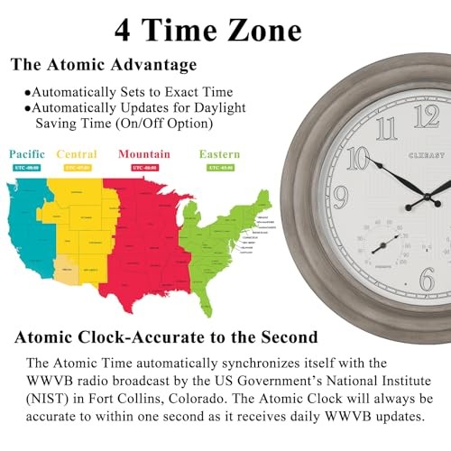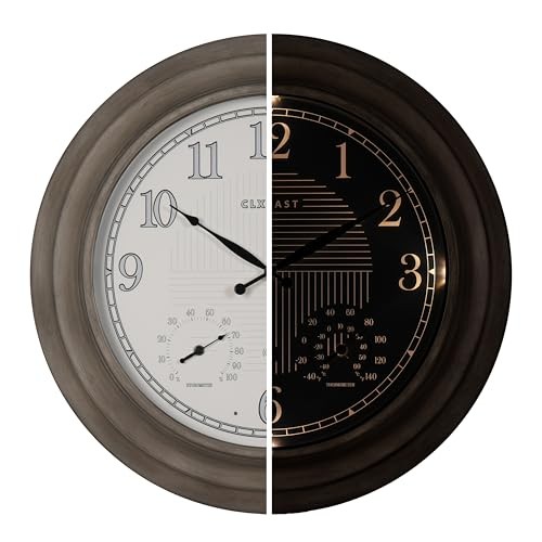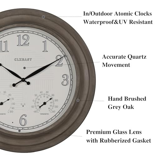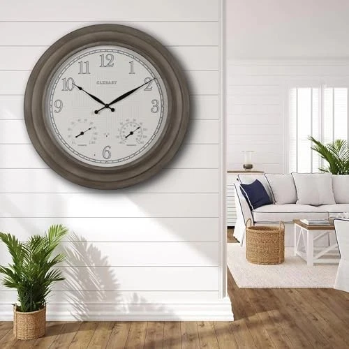 Return Policy Fast Delivery Trusted seller 24 Inch Self-Illuminated in/Outdoor Atomic Wall Clock with Temperature and Humidity, Oversized Large 24 Inch Wall Clocks for Living Room Decor, Brushed Grey Oak Wooden Finish Product Description [Outdoor Atomic Clock with Smart LED Light Sensor Technology]-This unique oversized 24" large outdoor metal wall clock is with integrated light sensor that automatically activates a warm, ambient dial backlight during dark conditions,shuts off in normal daylight 2 Backlight Modes - Always On, Always Off [Atomic Time-Accurate to the Second] - The Atomic Time Feature conveniently allows the clock to sync with the WWVB radio transmission from Fort Collins, CO, for accurate time updates, and no more worry about Daylight Saving Time any more,our outdoor atomic clocks sets themselves! Automatically set itself and readjust to Daylight Saving Time by WWVB(On/Off option);4 USA TIME ZONE selections: Pacific Standard Time(PST)-"P"; Mountain Standard Time(MST )-"M"; Central Standard Time(CST)-"C"; Eastern Time(EST)-"E" area 【IP56 Waterproof Outdoor/Indoor Atomic Wall Clock]-This hand brushed grey oak/faux barnwood 24 Inch oversized large outdoor clock is UV resistant& weatherproof,sealed with front and back rubberized gasket for protection from water and other outdoor elements.An elegant timepiece for your outdoor garden,pool, patio or backyard,porch,modern farmhouse living room,dinning room,bathroom,kitchen,fireplace,entryway,home office 【Built In Adjustable Thermometer & Hygrometer Sensor】Measures temperatures from -40 to 140 degrees Fahrenheit;Humidity sensor readings from 1% to 99% relative humidity. Automatically measures indoor and outdoor temperature & humidity.Allow the Thermometer & Hygrometer at least 3 hours to fully calibrate itself to the tell the temperature and humidity in the environment [Ideal Unique Gift Idea Atomic Analog Clock]-Perfect blend of modern & vintage home or outdoor decoration, this large outdoor indoor clock fits most decor whether french country, modern farmhouse, vintage traditional classic, shabby chic, Elegant Mid-century. It can be a great house warming gift,Mother's Day Gift,Father's Day Gift or Christmas Gifts Shipping Returns Payment Shipping Shipping is FREE to all addresses other than APO/PO boxes in the lower 48 states. All our stock ships from US-based warehouses. Shipped via USPS or UPS (depending on location and package weight) Unless stated otherwise, all orders will ship within 24-72 hours of your payment being processed. Check our feedback to see the great reviews of FAST shipping we offer. Returns Seller does not accept returns Payment We currently accept payment via eBay managed payments only. Once payment is cleared, we will dispatch your shipment within 1-3 business days. Please refer to the "Shipping" tab for more information regarding shipping speed to your destination.