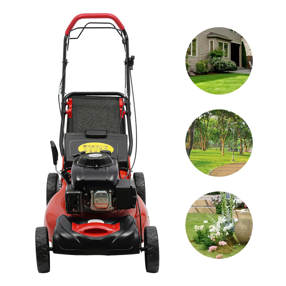 Self-Propelled Gas Powered Lawn Mower with Bagger with 4-Stroke Engine 20” 140cc Description The self-propelled gas lawn mower is not only a powerful assistant for garden maintenance, but also a finely crafted representation of the beauty of nature. This lawn mower is equipped with a high-performance 4-stroke engine, which brings new vitality to vast green spaces with its surging power. It is not only a tool, but also a free green paintbrush in the hands of gardening enthusiasts to outline vibrant landscapes. Key Features Outstanding Performance: Its premium 4-stroke engine can provide strong power (5HP), large displacement (140CC), and fast speed (2800rpm), which can help you quickly and efficiently complete mowing tasks. Clean Mowing: The manganese steel straight blade with a 20in mowing width undergoes quenching treatment, which is sturdy, sharp, and not afraid of gravel, ensuring that every mowing is clean and tidy. Thoughtful Design: It has 8 gears to adjust the mowing height (1-3.2in), making it easy to set the suitable height according to different grass species and growth conditions to ensure consistent aesthetics after lawn mowing. Continuous Work: Its 15.9gal large bag, 0.42gal gas tank and 0.2gal engine oil tank can collect more grass cuttings at once. Whether it is mowing large lawns or dense grass, it can easily handle without frequently emptying and refueling, making the mowing process more continuous. Easy to Install: The package includes all the necessary accessories and a detailed manual for installation, making installation simple. It can be put into use soon. Effortless Movement: The self-propelled mower does not require manual propulsion, making operation simple. Its reasonable height (42.1in) allows you to use it without bending over for a long time, reducing the burden on your waist and making it more comfortable to use. Modern Appearance: With plastic spraying, its surface is smoother and the color is more vivid. Its classic red and black combination not only meets your appearance needs, but also highlights your fashion and taste. Guaranteed Customer Service: Our friendly customer service team will be happy to help you with any questions you may have regarding this product. Details Soft Handle: The handle with a soft surface can effectively reduce hand pressure to maintain a comfortable grip. Practical Silencer: With a silencer, it has a noise level of about 70dB during operation, allowing you to enjoy a quieter experience while mowing. Stable Wheels: The four wheels are made of reinforced nylon, and the grooves on the wheels grip the ground more firmly, effectively preventing shock and ensuring a smoother mowing process. Application It is suitable for lawn mowing work in sports fields, community greening, municipal greening, urban gardens, villas, estates, and other places. Specification Material: Steel, Nylon, Manganese Steel Treatment: Quenching, Plastic Spraying Color: Red, Black Power Source: Gasoline Engine Type: 4-stroke, Single Cylinder, OHV Gasoline Engine Start Type: Pull Start Drive Type: Self-propelled Power: 5HP Speed: 2800rpm Displacement: 140CC Noise Level: About 70dB Gasoline Tank Capacity: 1.6L/0.42gal 4-stroke Engine Oil Tank Capacity: 0.6L/0.2gal Grass Catch Bag Capacity: 60L/15.9gal Mowing Height Adjustment: 8 Gears (25-80mm/1-3.2in) Mowing Width: 51cm/20in Wheel Size: 19.5cm/7.7in (Front); 24.5cm/9.7in (Rear) Unfolded Product Size: 54*158*107cm/21.3*62.2*42.1in Folded Product Size: 54*119.5*67cm/21.3*47.1*26.4in Package Size: 88.5*60*47.5cm/34.8*23.6*18.6in Net Weight: 32.65kg/72lbs Gross Weight: 36.85kg/81.2lbs Package Included 1* Self-propelled Gas Lawn Mower 1* English Manual All Accessories for Installation Notes Please read the manual carefully and pay attention to the safety precautions inside. Please allow the slight color difference caused by the shooting light and 1-3cm error due to manual measurement, and make sure you do not mind before ordering. Payment Delivery details Terms of sales About us Contact us Payment We accept ebay payment 。 Fees such as import duties, taxes are not included in the item price or shipping costs. These charges are the buyer's responsibility. Delivery details Shipping: 2-9 working days to: USA Terms of sales We maintain high standards of excellence and strive for hundred percent customer satisfaction. Feedback is very important to us. We hope that you contact us immediately before you give neutral or negative feedback, so that we can address your concerns. It is impossible to address issues if we do not know about them! About us Your satis faction is our ultimate goal. We work hard to earn your trust and future business. Our certified technicians have tested each item before shipping. The unit comes with 1 year limited warranty on all manufacturing defects. a) If you receive a defective item, you may return it or ask for a discount. Please contact us within 14 days after you receive the package. b) What you returned must be intact and in its original packaging as re? u. Customer is responsible for shipping costs of the returned item. c) We will cover the cost of shipping back t with the shipping rate indicated in the registration page. We will send you a new unit or refund the full payment you paid. Thank you. Contact us Business Hour Business Hour: Monday To Friday: 8:30 AM to 5:00 PM (Beijing China time) Due to time zones, our reply to your questions may not be immediately. But within above working time, we will reply your email within 24 hours. If it's non-workdays, please kindly be patient and wait till Monday. Please contact us with ebay message. Please feel free to contact us if you have any questions. Monday To Friday: 8:30 AM to 5:00 PM (Beijing China time) Due to time zones, our reply to your questions may not be immediately. But within above working time, we will reply your email within 24 hours. If it's non-workdays, please kindly be patient and wait till Monday. Please contact us with ebay m