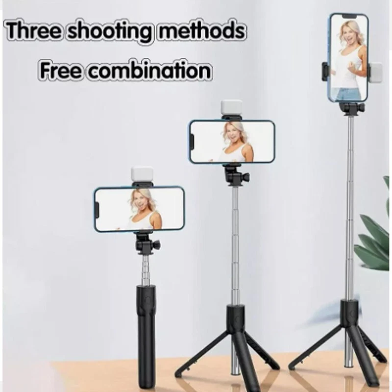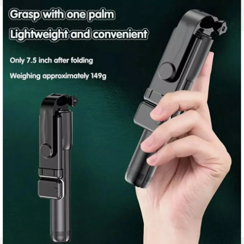 Extendable Selfie Stick Tripod with Detachable Wireless Remote and Tripod Stand Selfie Stick Compatible with All Cell Phone Compact Size & Lightweight Extendable & Foldable Selfie Stick for Cell Phone - This selfie stick tripod can be extended between 7.6 to 34 inches, suitable for Photograph, Facetime, Business and more. Compact design, take this selfie stick everywhere you go. Selfie Stick Tripod With Wireless Remote - 2-in-1 selfie stick tripod with built-in detachable wireless remote (max: 33ft). Allows you to take selfie or group photos like parties, graduation, wedding, travel. Use as regular selfie stick or tripod (Under tripod mode, the center of gravity of cellphone must be kept in line with the selfie stick. The lower the height of extendable rod, the better the stability) Widely Compatible Selfie Stick Tripods for Phone - Compatible with most 4.7 - 6.0 inches Smart Phone. Easy application and precise positioning to expand the range of shots you can capture. Adjustable Phone Holder Tripod and Selfie Stick - 230° rotation head. Use in horizontal camera mode to get the best angle photos. Lightweight & Premium Aluminum Alloy - Comfortable handle and aluminum alloy material selfie stick tripod, not only light but also corrosion resistant. Specifications Material: ABS+stainless steel Suitable for: Cameras, mobile phones Equipment weight: About 130g Product size: 7.68*1.38*1.57in Bluetooth version: Bluetooth 4.0 Bluetooth transmission distance: 10M Support Phone size: 4.7 - 6.0 inches User Manual: 1. Press and hold the remote control button to turn on the remote control blue light flashes. 2. Turn on the phone Bluetooth, search for the new device "SelfieCom", and then connect. 3. After the pairing and connection is completed, open the mobile phone camera software. 4. Set the pose Press the remote control shutter to control the photo. Package Includes 1x Retail packaging 1x Selfie Stick Tripod 1x Detachable Bluetooth Remote(Included battery CR1632) 1x User Manual