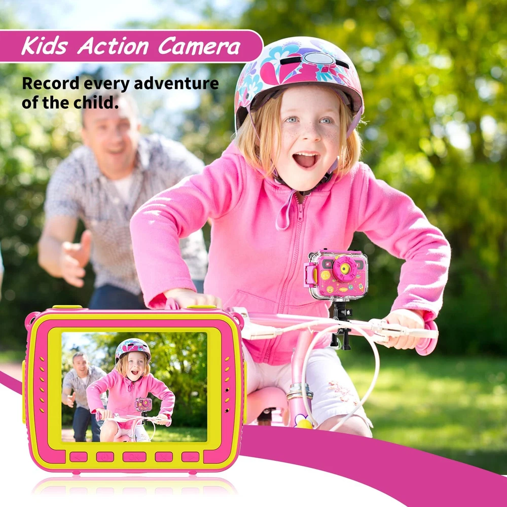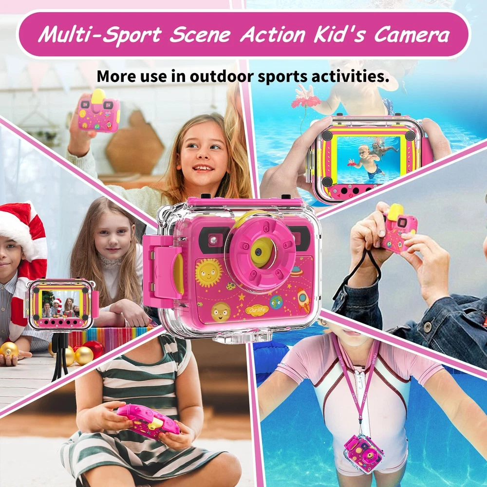 Best Toys:is the best gifts toys on a Birthday / Children's Day/ Holiday to . Featuring FHD 1080p/30fps and 8MP bright photos, thereby shooting the most memorable moments.2.4 inch colored large screen for clearer picture quality,Supports 12 different built-in frame photo effects and 7 video filters which makes it was by far the most loved gift at the party. Face Detection & Selfie:digital comes with a self-timer function and strong light suppression.The action for will take beautiful pictures automatically with 5S/10S timer and continuous shooting function.Selfie detects a face automatically.If the background has a strong light,dilutes the glare to make the rendered picture look more realistic.Great selfie starter for budding photographers. A Breathtaking Adventure:With a durable waterproof case, waterproof capture amazing pictures up to 30 meters (100 feet) . It is ideal for beaches,diving, swimming, rafting, snorkeling, surfing and much more. for has a multifunctional accessory mounting hole that can be installed on a bicycle or selfie stick.There is a durable neckband,a silicone handle and tripod bracket for safe use and full protection. Dual Fill Light & Long Battery:Digital waterproof has a fill light function. When you use it at night, video 's complementary fill lights will help illuminate the dark environment.It also has a flippable lens that can be flexibly adjusted in angle according to the needs of children.has which lets you record continuously for 2 hours,with large capacity batteries and 8GB Memory card.This maybe our go-to birthday gift for the best friends. After-Sales :comes with a 30-day money back and 12-month Service.We provide free .us if there is any issues with the and we will be happy to help. Customer Satisfaction is our goal.