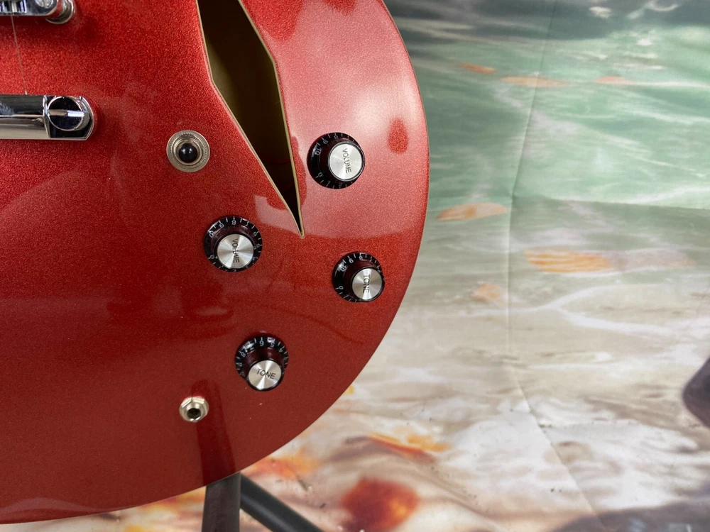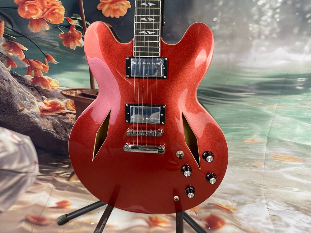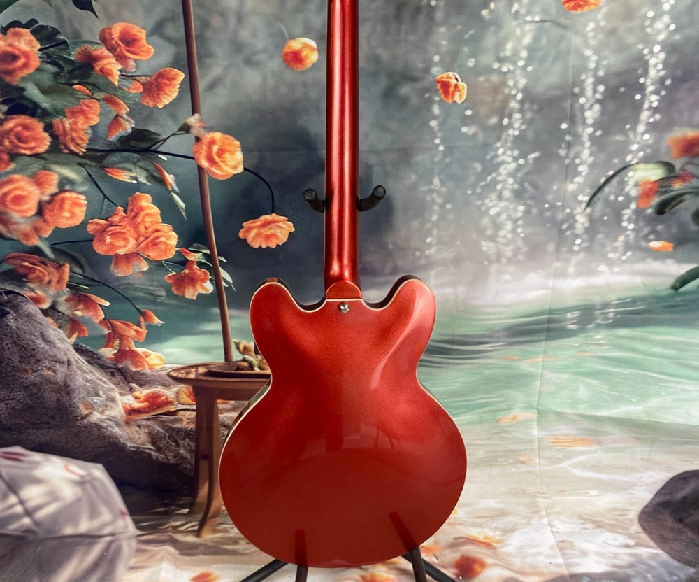 The product is a high-quality semi hollow electric guitar with a red maple body, mahogany neck, and rosewood fretboard. It is a professional-level 6-string guitar designed for right-handed players. This limited-time offer includes a cable and has 22 frets. With a standard series and custom model year of 2025, this electric guitar is perfect for musicians looking for a versatile and well-crafted instrument.