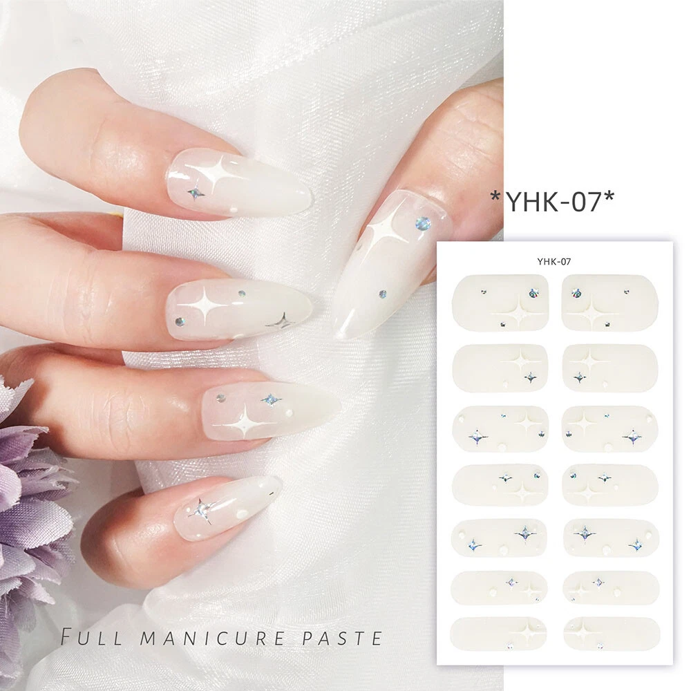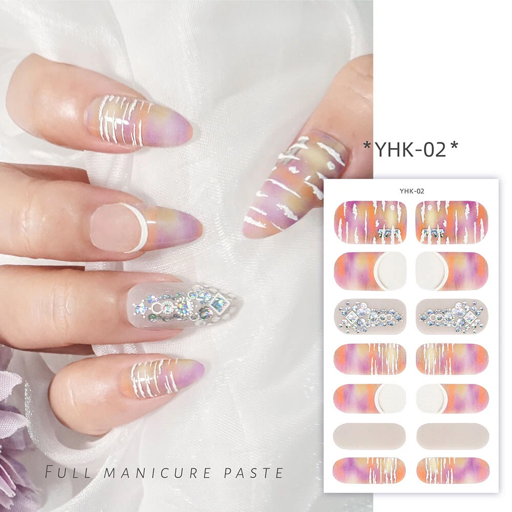 100% New arrival 3D nail wraps Nail stickers with rhinestones Fashion 3D Pattern designs Colors: As the picture show QTY: 14 Tips/Sheet Character: Self-adhesive, no need glue more Package Contents: 1 Sheet Nail Sticker Features & Usage: One sheet of adhesive nail stickers to fit all fingernails, toenails and nail tips. Suitable for professional salon use or personal home use. How to use: 1. Clean the surface where the design is to be applyed. 2. Select a design and peel off by your nails. ( note: donot touch the glue) 3. Apply the design onto nails/tips and rub it gently several times. 4. Apply top coat for a perfect effect.