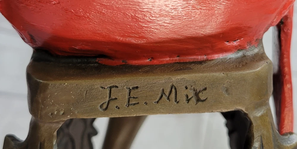 Condition : This sculpture is in perfect condition. Bronze Dimensions: Height 21.5" X Width 6.5" Weight:12 LBS Inventory:71EP266B12017 Step back in time to the Roaring 20s, the era of jazz, F. Scott Fitzgerald, and the fearless Flapper. These young women, known as the "New Breed," defied societal norms with their rebellious behaviors, including smoking, drinking, and yes, even driving. This exquisite bronze sculpture captures the spirit of these free-spirited individuals, making it a must-have for any aficionado of this iconic period. The Flapper is poised confidently on a black patina stool, embodying the era's spirit with her loose reddish patina short dress that drapes elegantly over her curves. Her gold beaded belt accentuates her waist, and a bow at the back adds a touch of flair to her attire. This sculpture impeccably portrays her relaxed demeanor as she rests a hand on her pulled-in knee, while her other leg swings down, revealing her voluptuous thighs in a rich brown patina. Her black bobbed hair peeks from beneath her fitted cloche hat, adding to her allure. This 100% handmade bronze sculpture, meticulously detailed and crafted using the time-honored "Lost Wax Method," is a true work of art. It proudly bears the signature of the artist J.E. Mir, a testament to the skill and dedication invested in this piece. Whether you're a fan of the 1920s, jazz music, or simply appreciate the beauty of this bygone era, this sculpture is a captivating and evocative addition to your collection or living space. Gorgeous Champagne Lady Sculpture by J.E Mir Brown Red Patina Figurine Sale Video will open in a new window Using the eBay App? Paste link into a browser window: [isdntekvideo]