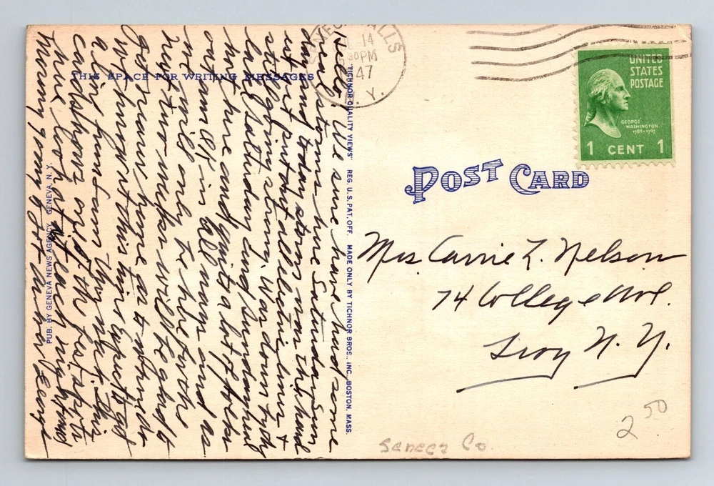 Subject: Cities & Towns Original/Licensed Reprint: Original Era: Vintage City: Seneca Falls Country/Region of Manufacture: Unknown Country: USA Type: Printed (Lithograph) Region: New York Postage Condition: See Image Theme: Cities & Towns Unit of Sale: Single Unit
