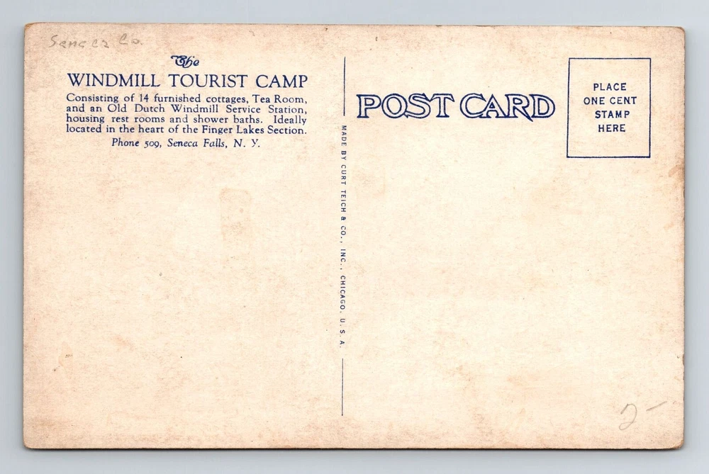 Seneca Falls NY-New York, Windmill Tourist Camp, Antique Vintage Postcard