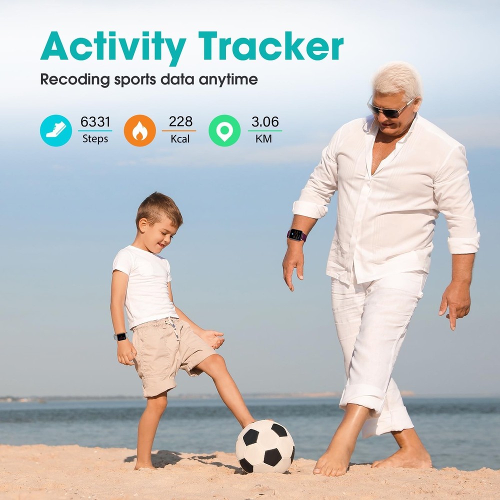 fitness tracker No APP & Phone Required Pedometer Watch: This pedometer watch doesn't require any App or smartphone connections; It's as simple to use as a regular watch but smarter; Perfect for seniors anyone looking for an easy fitness tracker without the hassle of smartphone setups User-Friendly Desigh: This smartwatch features has a large LCD color display, allowing all settings and operations to be easily completed via the responsive touch screen; Its convenient operation is especially friendly for both elderly! Heart Rate Monitoring and Blood Oxygen: Our smart watch monitors your heart rate in real time, and you can use the watch to manually detect your Blood Oxygen; Stay healthy with our smartwatch! Accurately Track Your Fitness Data: This fitness tracker accurately monitors and records your steps, calories, distance, and activity time, providing you with a clearer understanding of each exercise's data! Care for Your Sleep Quality: This smart watch trackers your relevant sleep data after you fall asleep, assisting you in cultivating a healthier lifestyle Long Battery Life: This fitness tracker uses a simple magnetic charging method, enabling quick charging with just a gentle touch; It only takes 1.5 hours to fully charge and can last up to 7 days on a single charge Enhanced Waterproof Performance: This fitness tracker meets the IP68 waterproof standard, ensuring no worry wear during swimming, allowing you to fully enjoy aquatic activities Perfect Present for Parents: This pedometer watch makes a wonderful gift for both seniors; It is simple, works without a mobile phone, and is very light and comfortable to wear