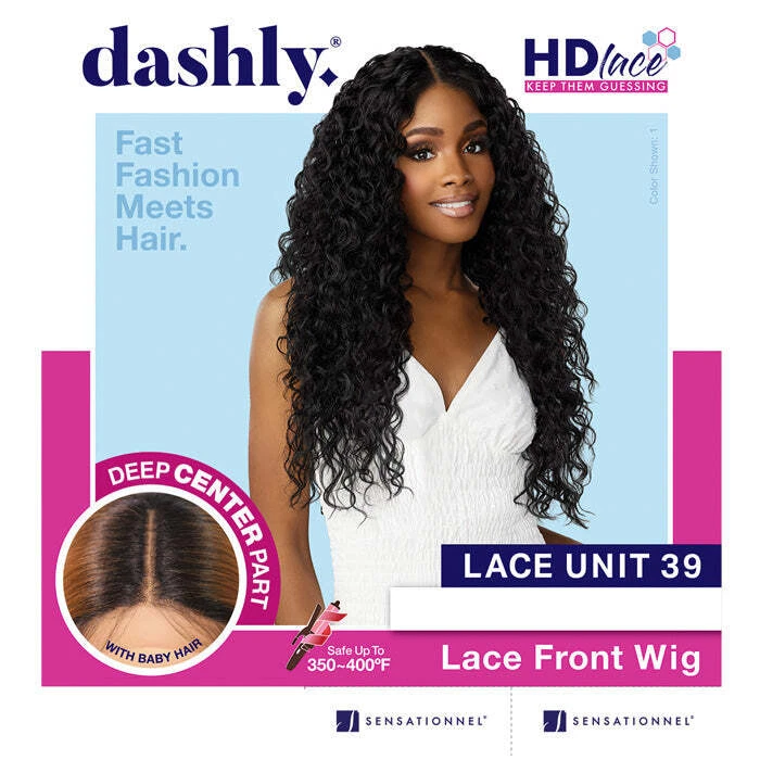 Sensationnel Dashly Synthetic 5" Deep HD Lace Front Wig - LACE UNIT 39 BRAND: Sensationnel / Dashly TYPE: HD Lace Front Wig STYLE: Curly MATERIAL: Synthetic Hair LENGTH: 26" HEAT RESISTANT: Yes DYE/BLEACH/PERM: No COLOR SHOWN: 1Deep curly style with defined curls with volume, similar to HH bundle curl patterns Available in fashion-forward colors 5 Deep lace parting Ear-to-Ear HD Lace 100% Premium Fiber, adjustable straps, and secure combs Instant and Fashionable Style CAP FEATURES PRODUCT DETAILS Virtually Undetectable HD Lace An Essential Addition To Your Wig Stash Made With Heat Resistant Fiber Available In Fashion Forward Colors Dress It Up Or Dress It Down . . . . . . . . . . . . . . . . . . . . MAINTENANCE Gently detangle the hair from ends to roots using a paddle brush or wide tooth comb. Turn the wig inside out and wet the hair with lukewarm water from the top (cap) to reduce tangling. Apply shampoo in a downward motion and rinse until water runs clear. Do not rub the cap when washing. Turn the wig cap back and repeat above steps with cold water when applying conditioner. Gently squeeze out excess water and pat dry with towel. Do not roll or rub the hair into a towel. Place the wig on a wig stand and air dry. We recommend using smaller head size to avoid stretching the cap. Apply a small amount of hair lotion or serum, as needed. If applying glue or tape, be sure to only apply on lace material.
