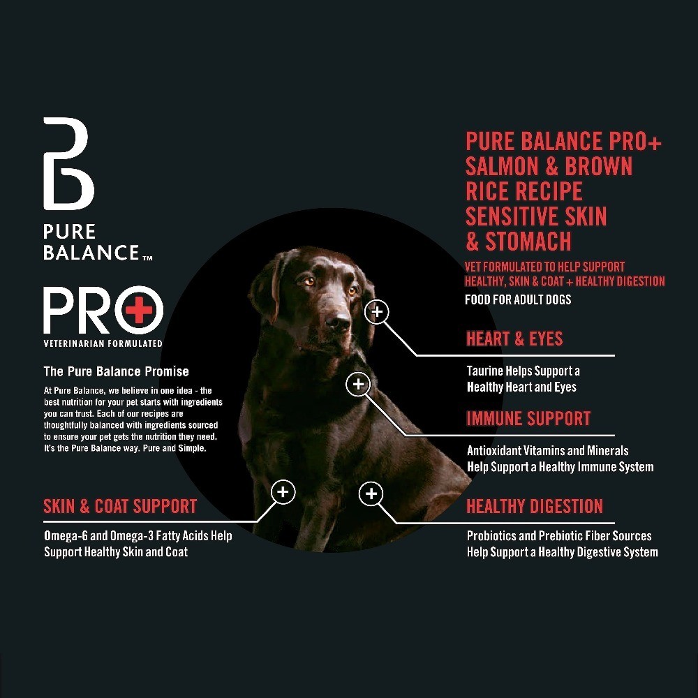 Our PRO+ Sensitive Skin & Stomach Salmon & Brown Rice Recipe Dry Dog Food is crafted with carefully selected ingredients to provide a simple, option for adult dogs. This recipe features real salmon as the first ingredient, paired with brown rice, peas, and other carefully chosen ingredients. It contains no artificial flavors or colors and is formulated with added vitamins, minerals, and other nutrients as part of a complete recipe. Created for adult dogs, this blend offers a straightforward option you can feel confident serving. Choose PRO+ Sensitive Skin & Stomach Salmon & Brown Rice Recipe Dry Dog Food for a dependable mealtime option. At , we believe in one idea – the best nutrition for your pet starts with ingredients you can trust. Each of our recipes are thoughtfully balanced with ingredients sourced to your pet gets the nutrition they need. It’s the way. Pure and Simple. Pro+ Sensitive Skin and Stomach Dog Food, Salmon and Rice Recipe, 8 lb Bag Vet-formulated recipe to help support healthy skin and coat plus healthy digestion Real salmon is the #1 ingredient Complete and balanced No artificial colors or flavors Taurine helps support a healthy heart and eyes Antioxidant vitamins and minerals help support a healthy immune system Probiotics and prebiotic fiber sources help support a healthy digestive system Amount of food your dog requires will depend on age, activity, and environment, and should be adjusted accordingly